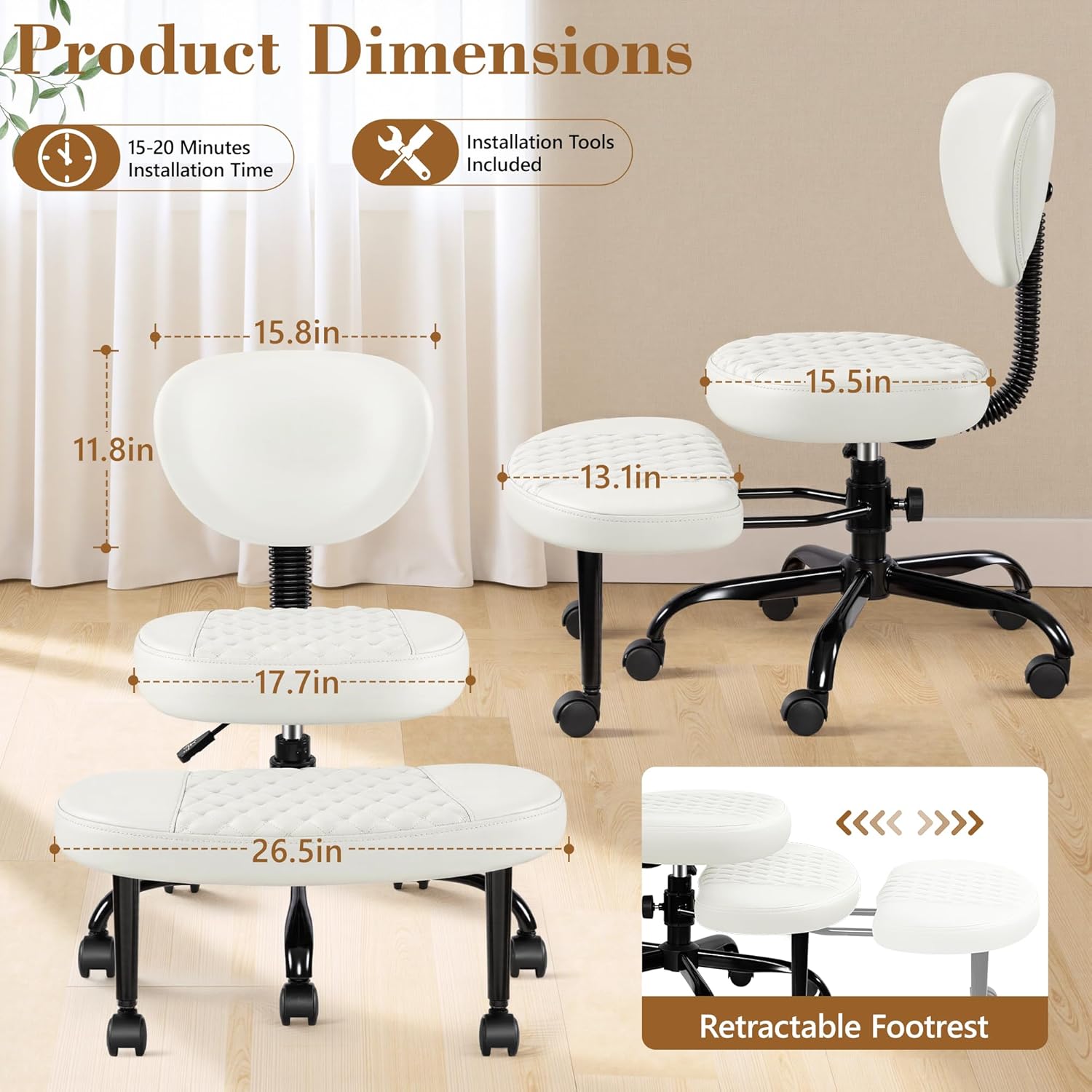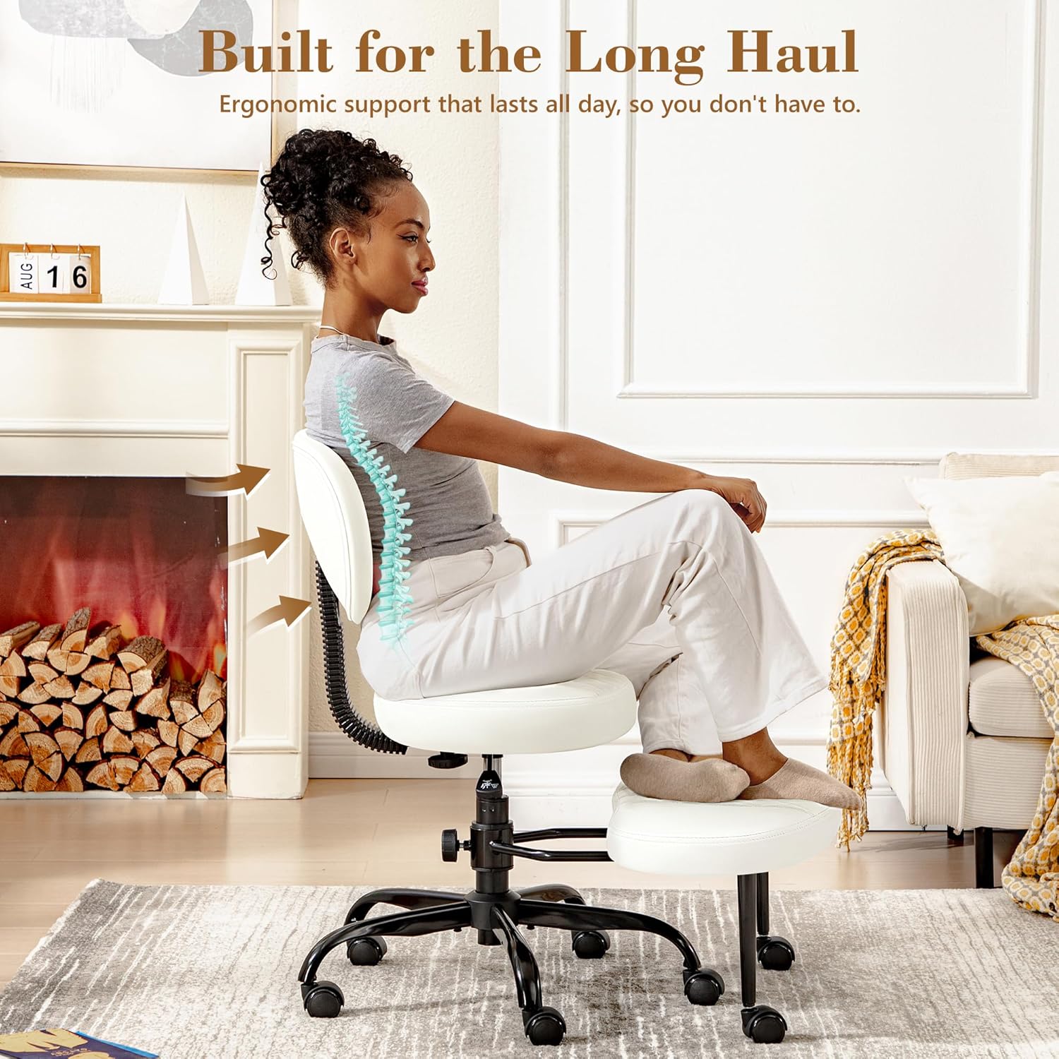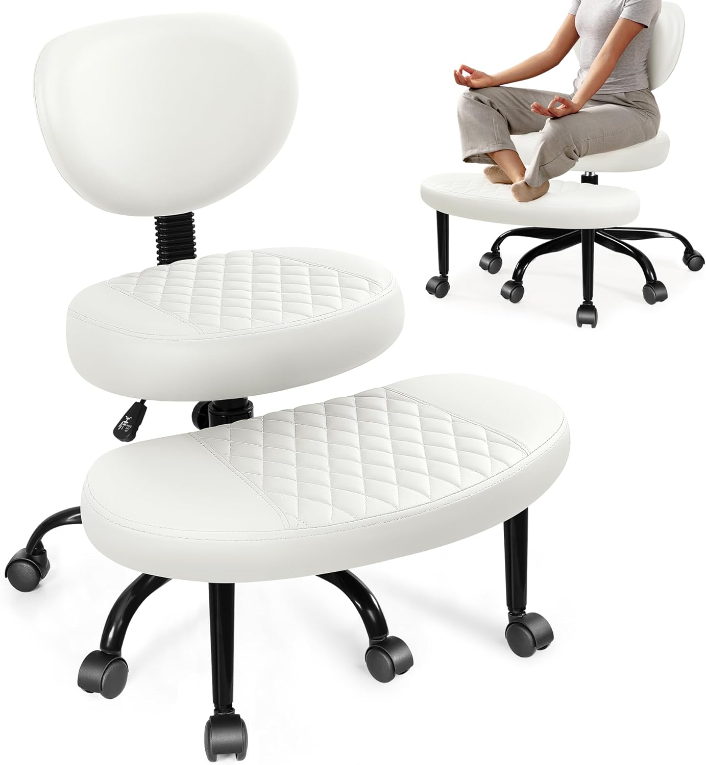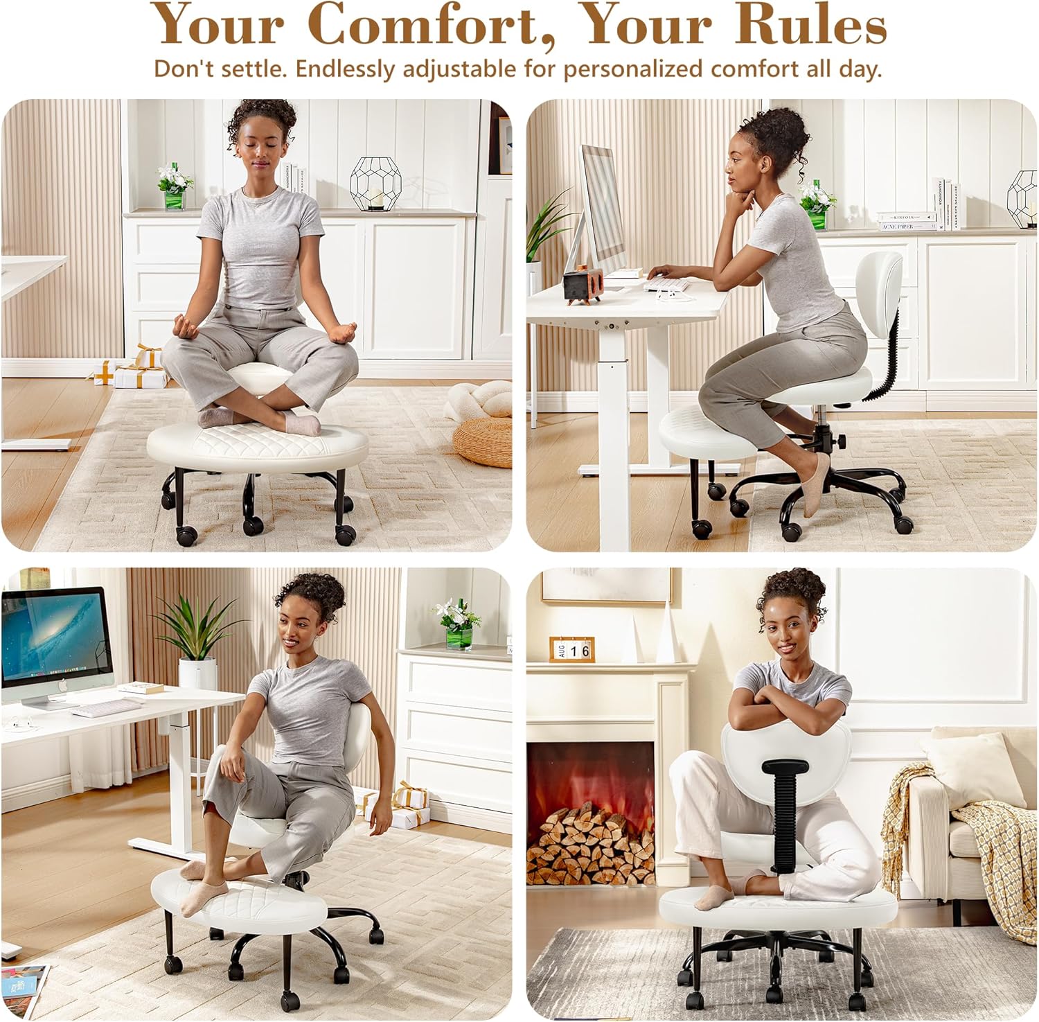 Ergonomic Cross Legged Office Chair with Wheels – Adjustable Height for Meditation, ADHD Desk & Yoga – Wide Criss Cross Design with Lumbar Support, Kneeling Chair – White