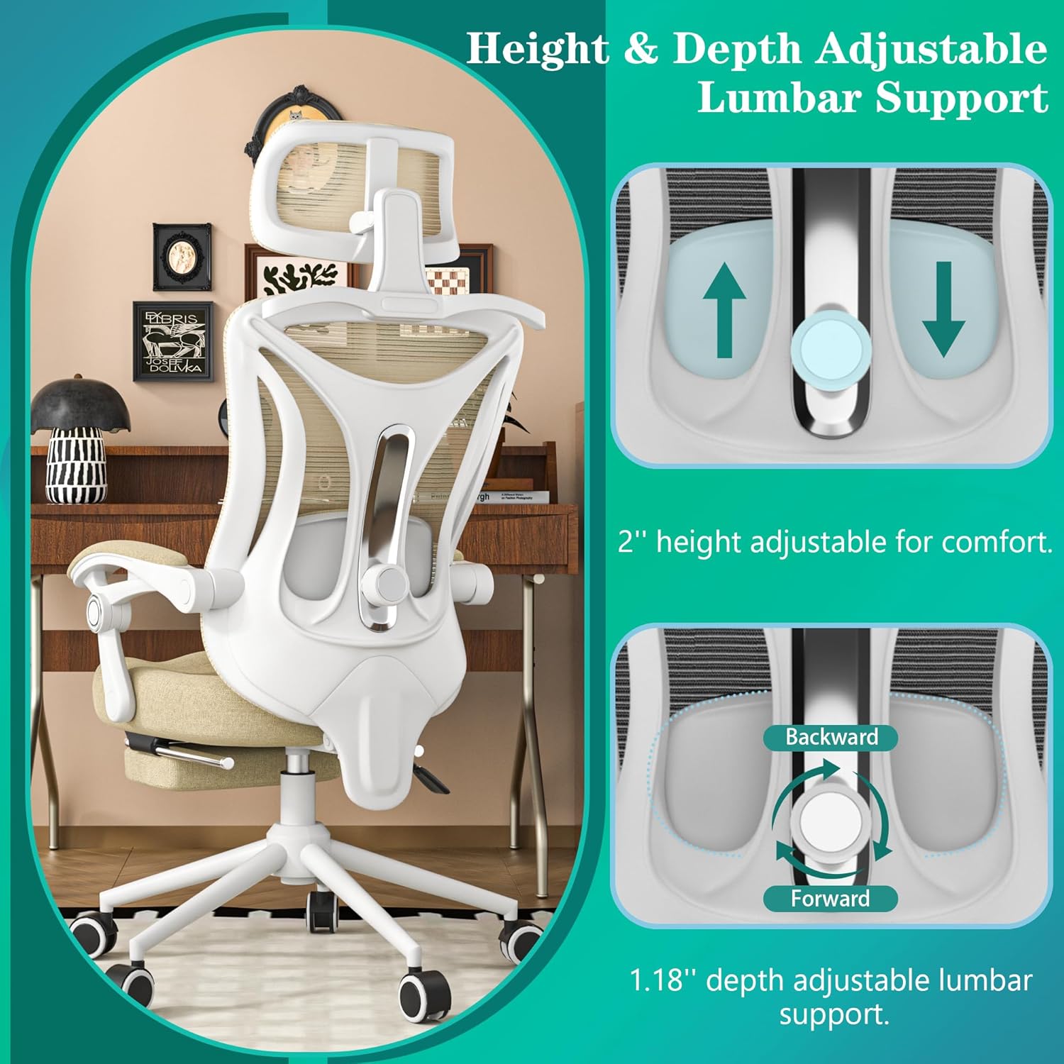 Custom Lumbar Support: 2-inch height + 1.18-inch depth adjustment. It “hugs” your lower back, just like a personalized spine guard (perfect for long sitters).