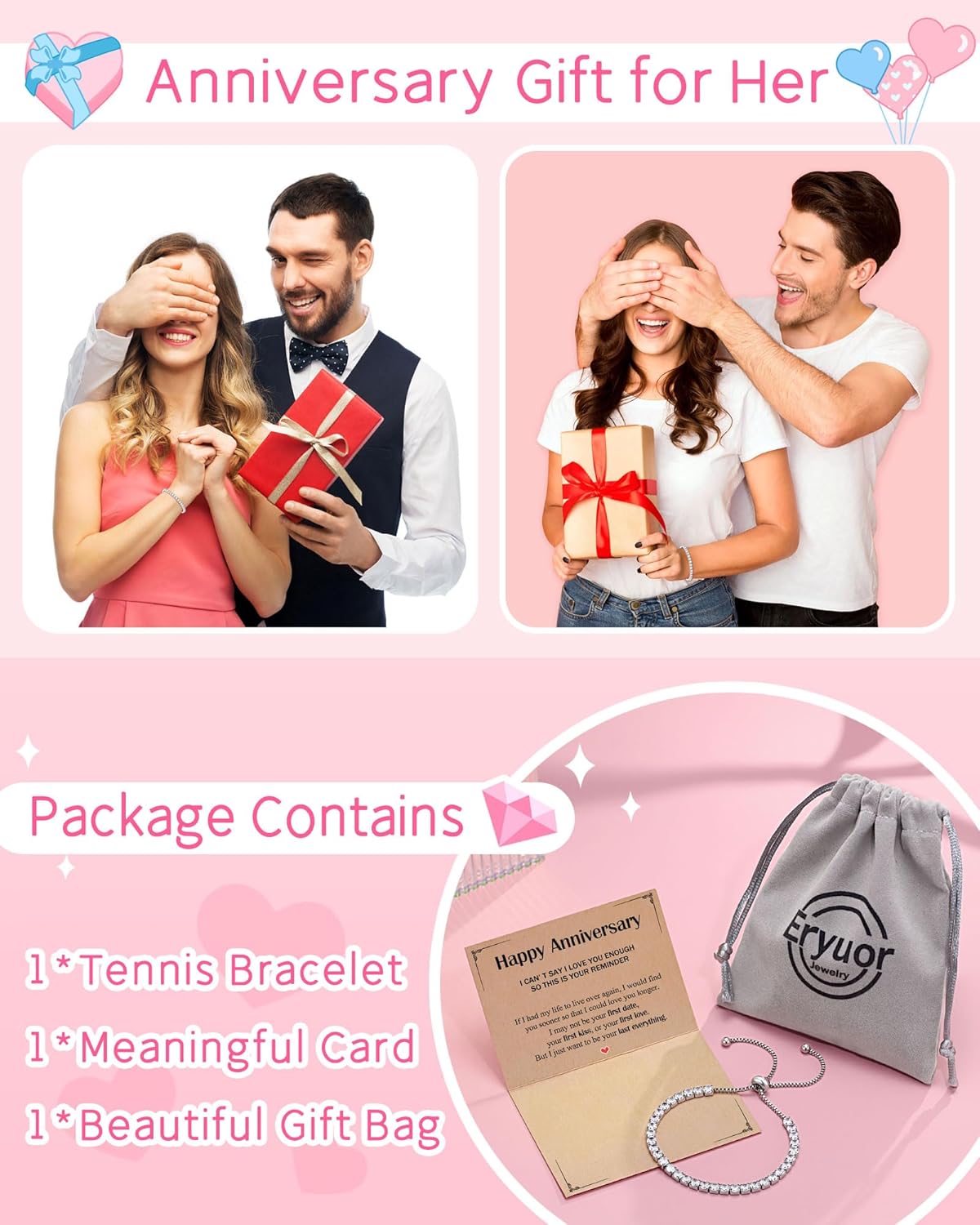 Eryuor Cubic Zirconia Tennis Bracelet for Women Christmas Anniversary Valentines Birthday Gifts for Daughter Wife Girlfriend Her