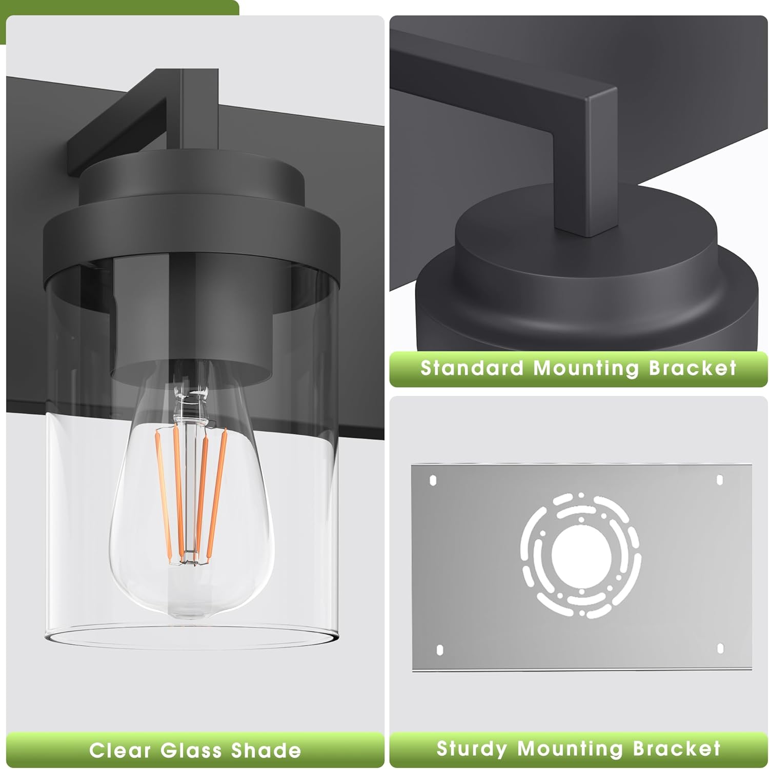 Matte Black Paint Finish and Farmhouse-ish Style: Espird Farmhouse vanity light is designed with matte black finish frame and clear glass shades, reflecting light to a delicate and gorgeous effect. This farmhouse vanity light looks very designerish and visual comfort inspired to you!