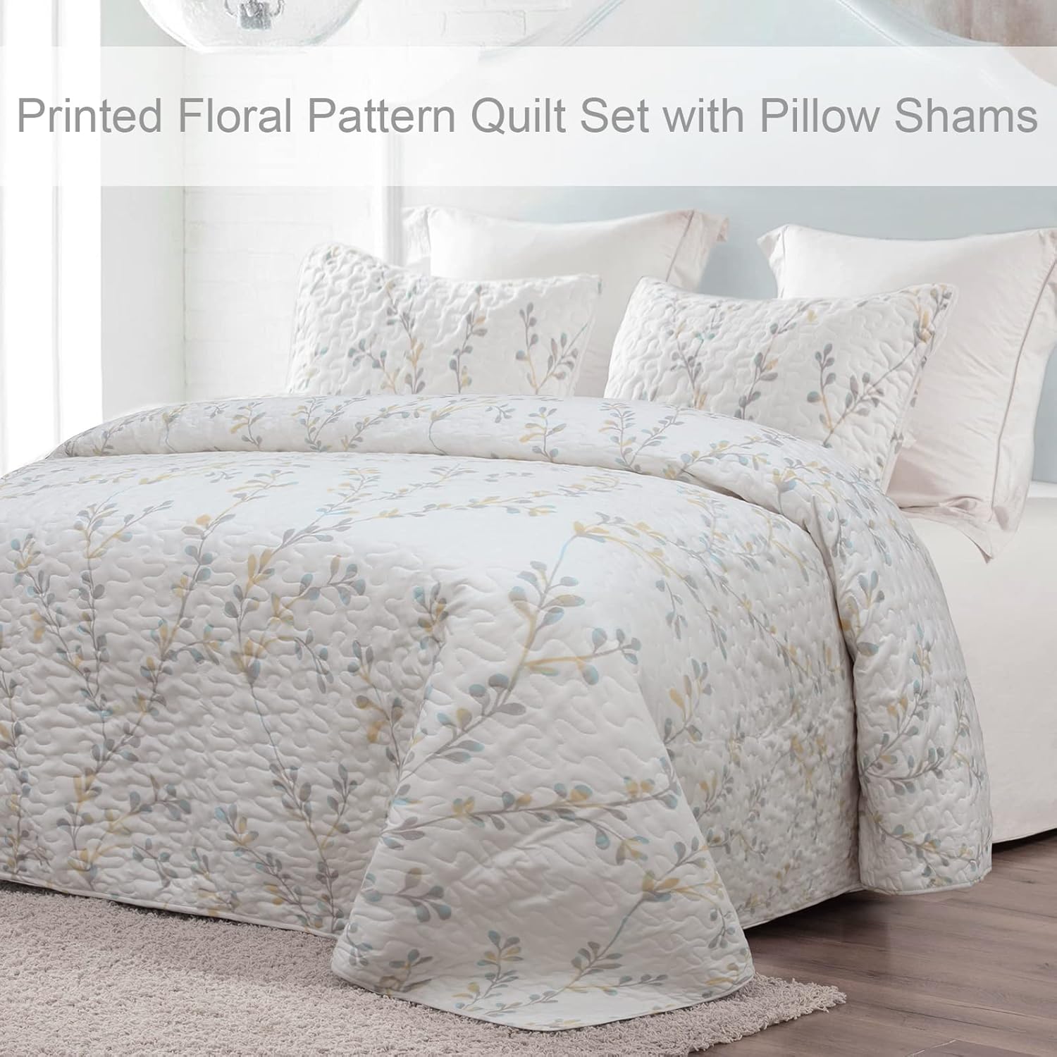 Premium Material: The floral quilts sets are made of brushed microfiber and filled with polyester which make the quilt ultra-soft, breathable, silk touch, lightweight and suitable for all seasons