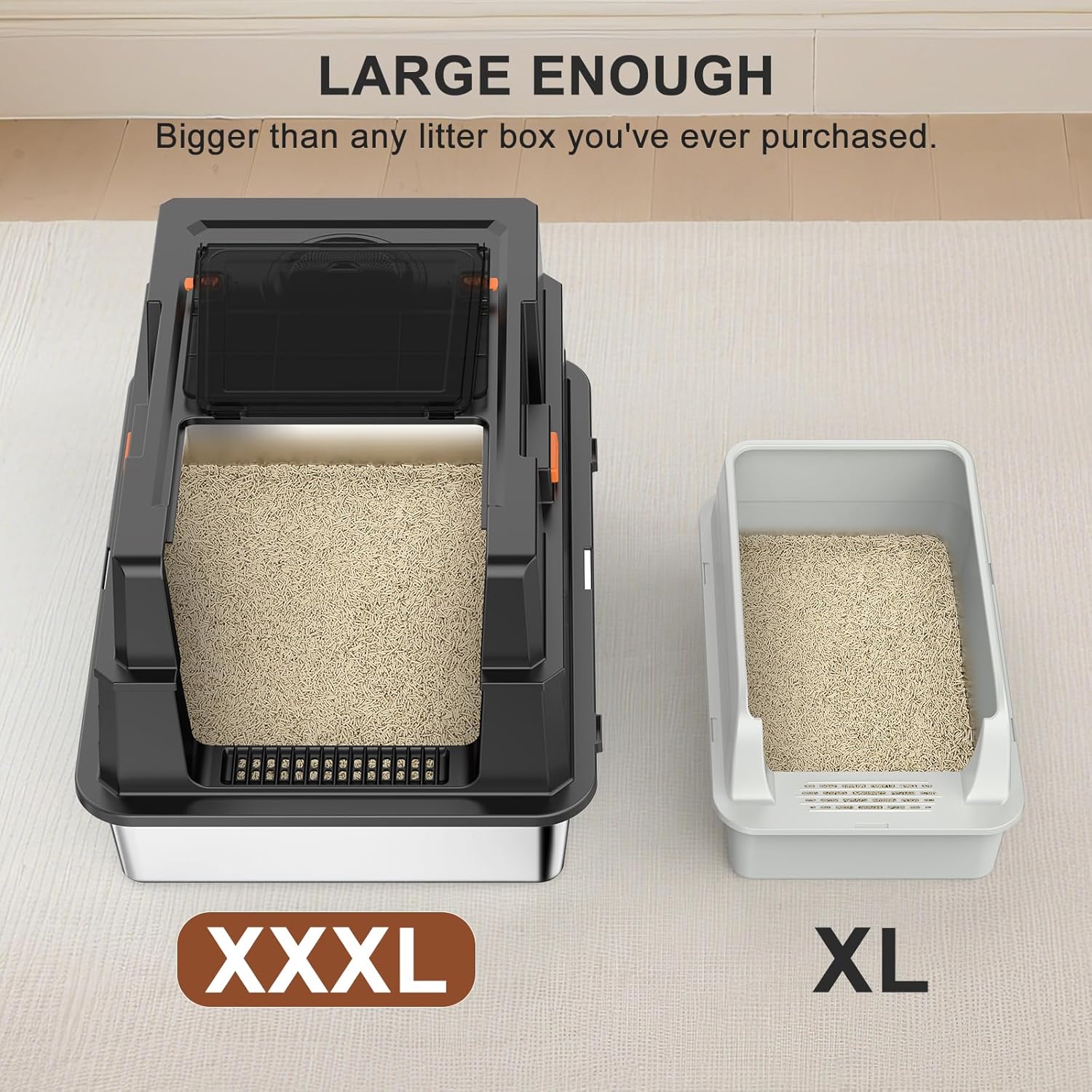 GIANT EXTRA LARGE LITTER BOX: Spacious XXXL size perfect for multi-cat households or large cats, providing ample room for comfortable use and easy movement.