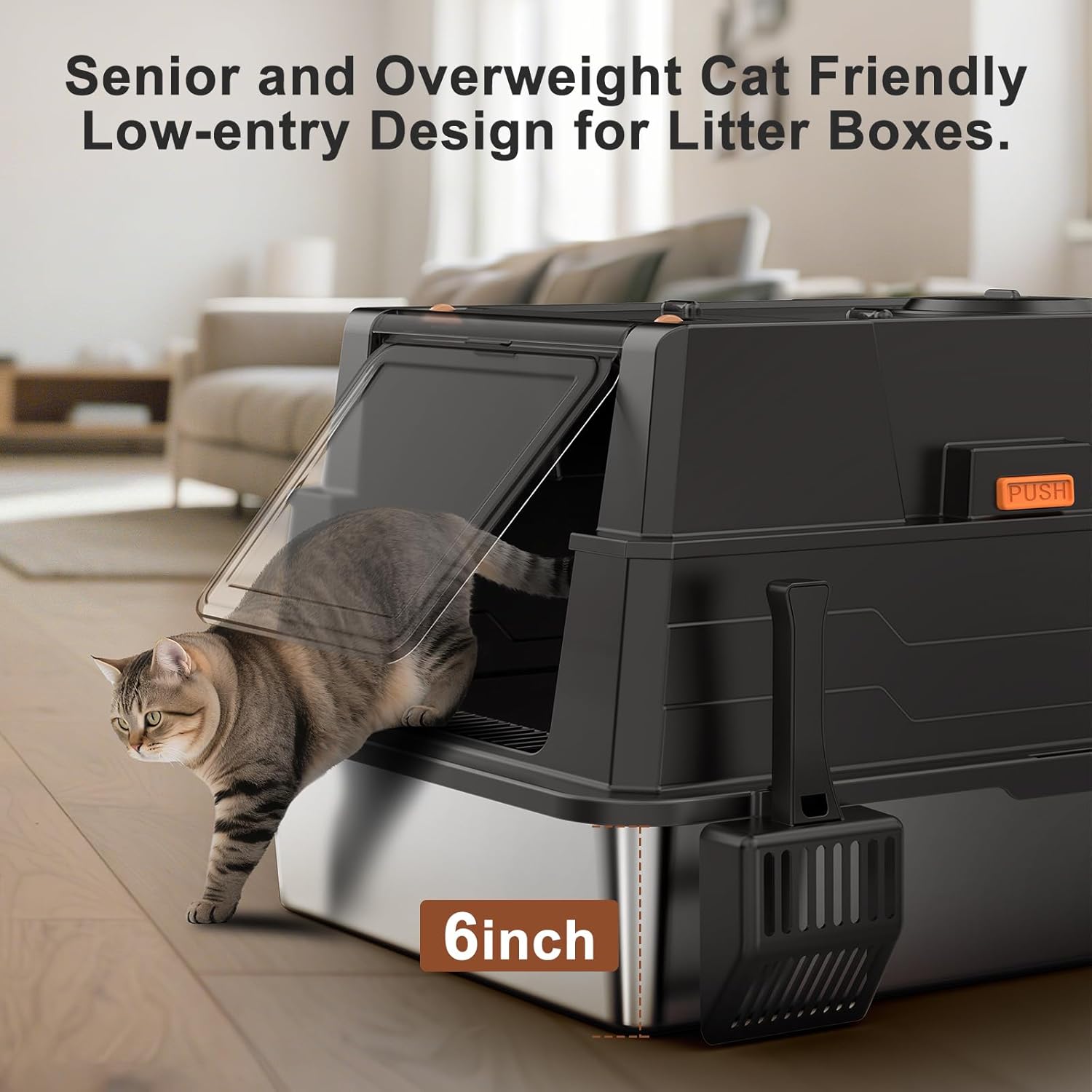 ENGINEERED FOR STRESS-FREE SCOOPING:No dismantling required! This extra large stainless steel litter box with lid features a reinforced 180° flip-top that stays securely open during scooping.