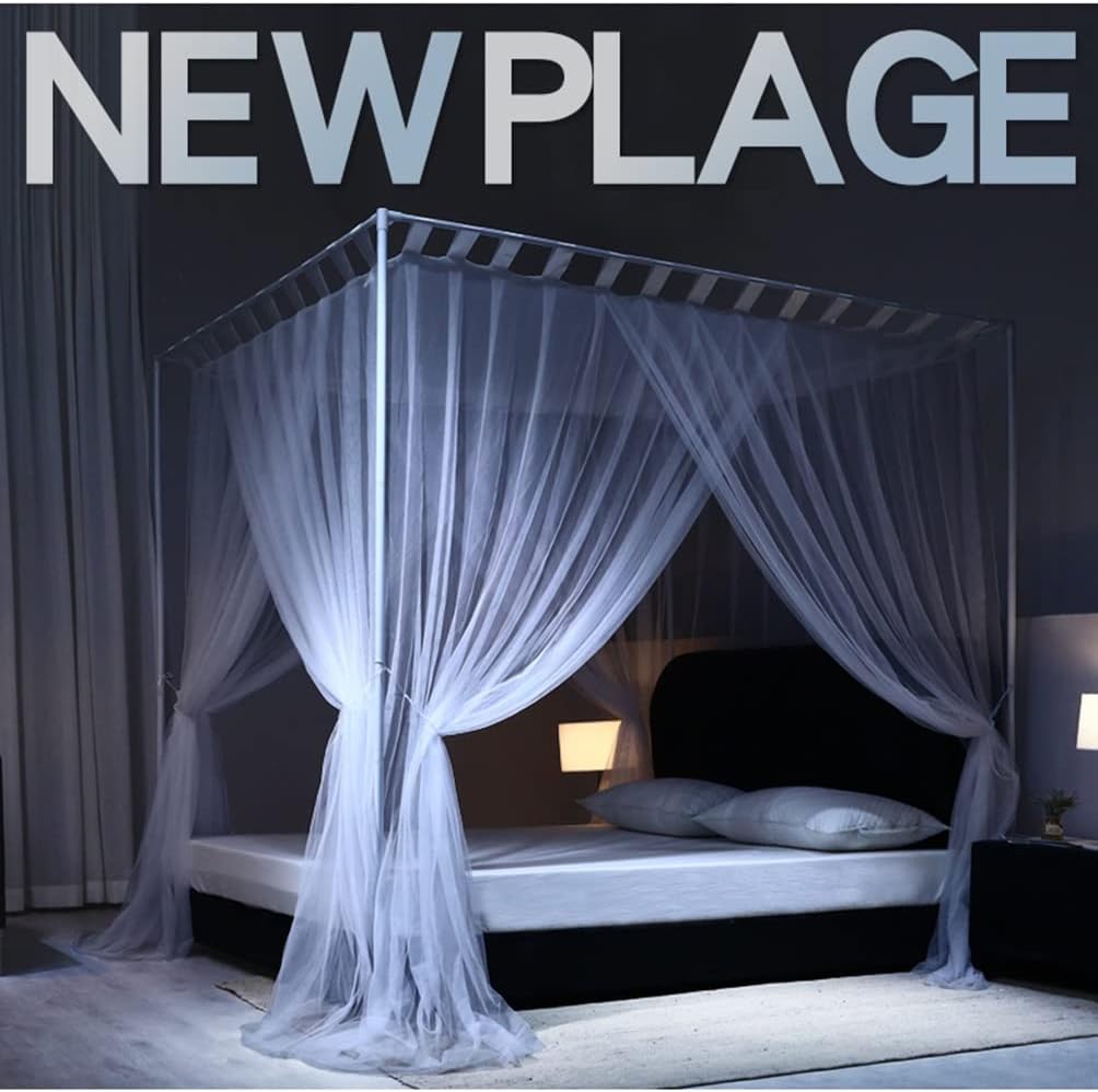 Fabric Bed Drapes Mesh Protection Canopy Shielding Netting,Summer Bed Canopy Mosquito Net for Single Double Bed, 4 Corner Post Floor Bed Curtain Girls Bedroom Decor with Metal Stand