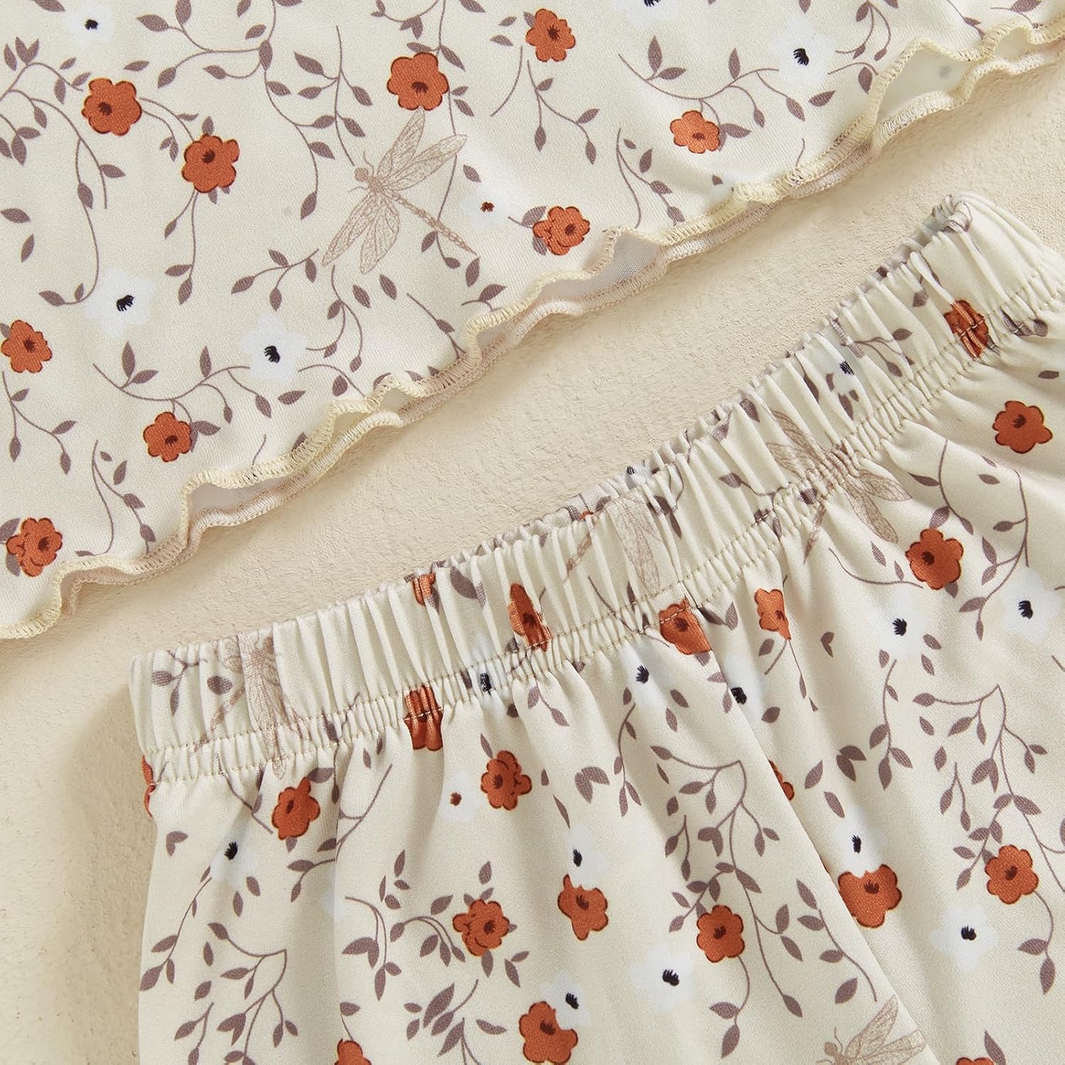 fhutpw Toddler Baby Girls Summer Clothes Floral Crewneck Short Sleeve T-Shirts Tops Ruffle Shorts Cute Outfits Set 6M-4T