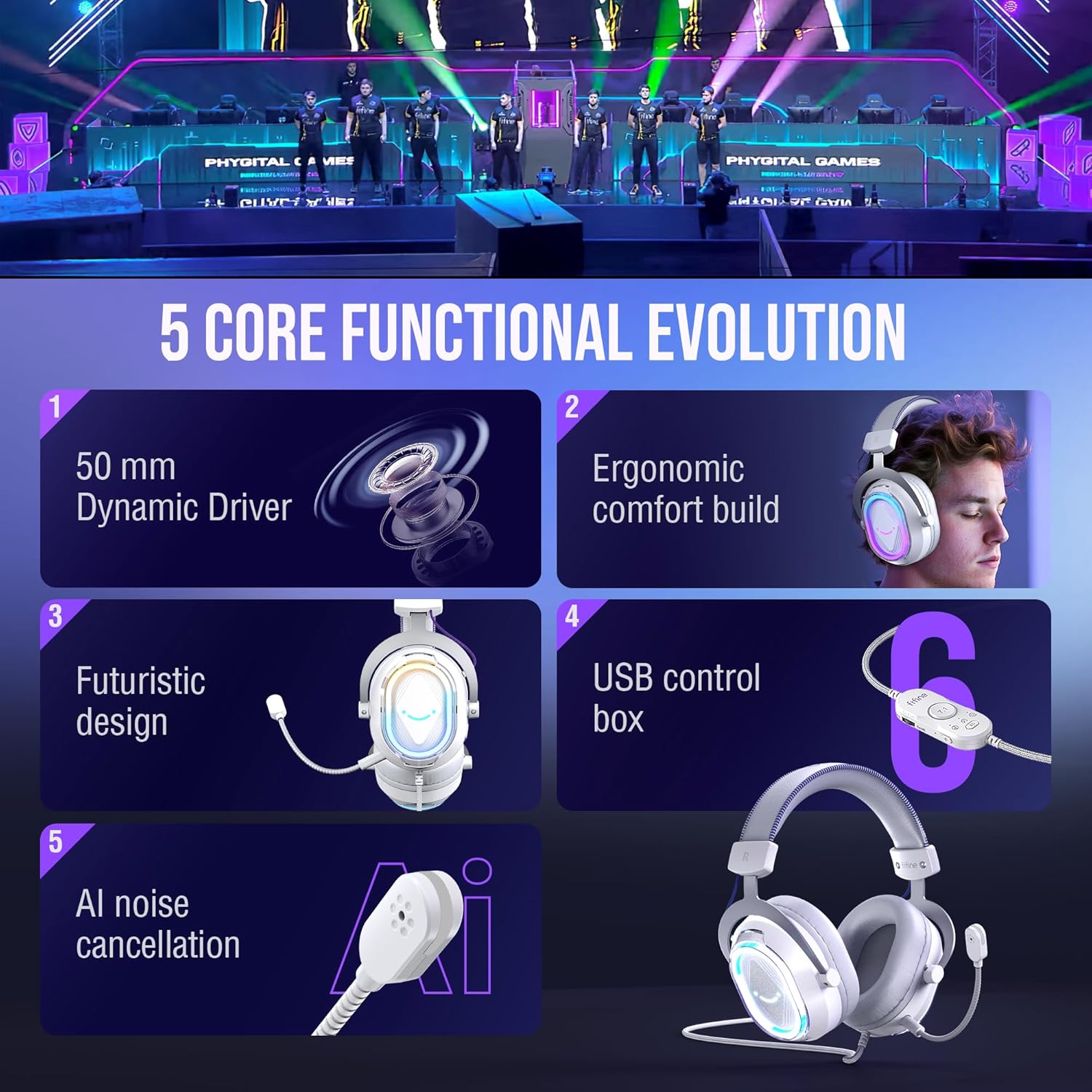 [Next-gen Audio clarity] Experience upgraded sound of Fifine H13 gaming headset, the 50mm drivers delivers over 30% richer audio, where every bullet reload and enemy footstep cuts through the chaos of battle clearly. 7.1 surround sound immerse you into 360° stereo sound, precisely locating enemy movements for competitive gameplay advantage.