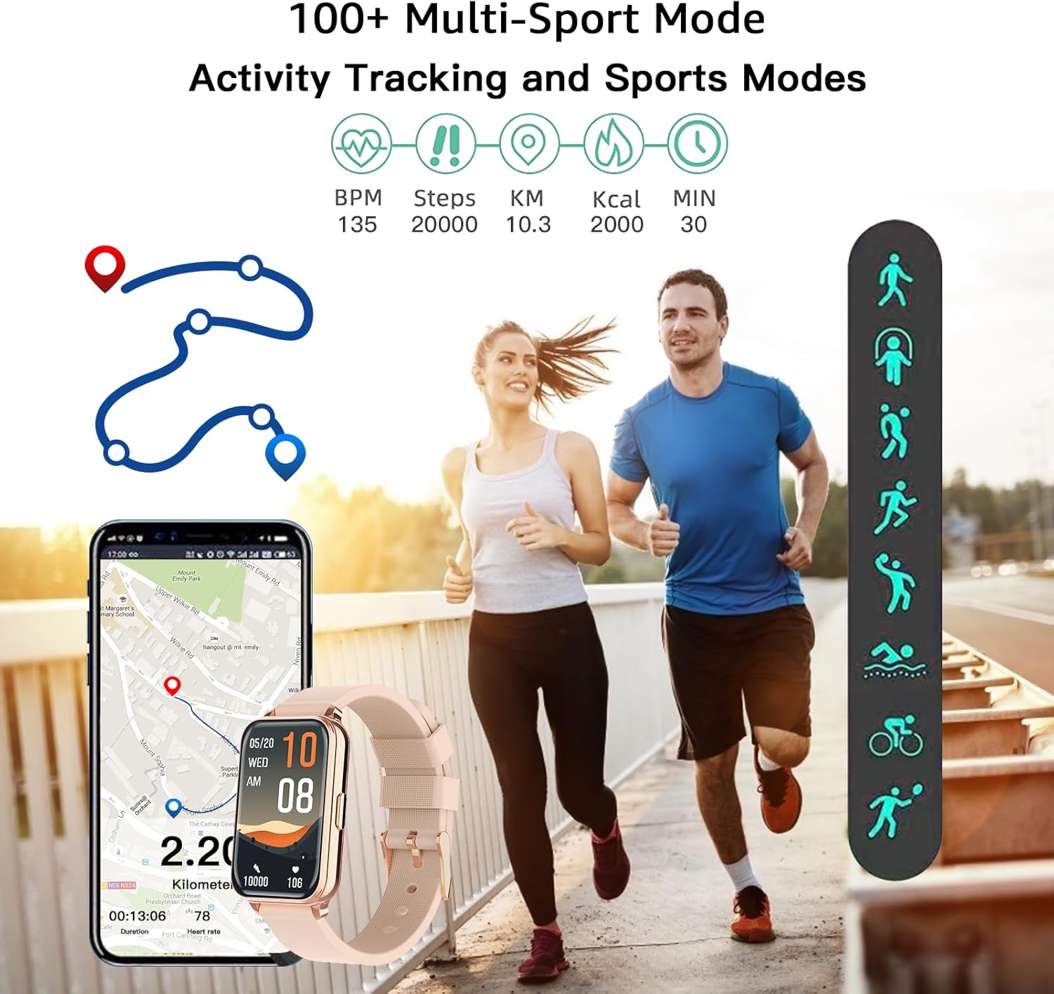 【Comprehensive Fitness Tracking】 This smart watch fitness tracker offers all-day activity monitoring, including steps, calories burned, distance traveled, and supports multiple sports modes, making it the perfect companion for fitness enthusiasts looking to optimize their workouts.