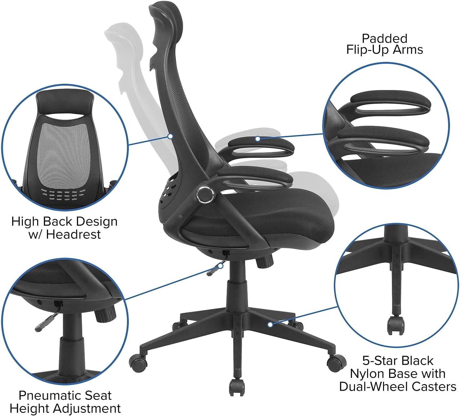 Flash Furniture Ivan High Back Black Mesh Executive Swivel Office Chair with Flip-Up Arms