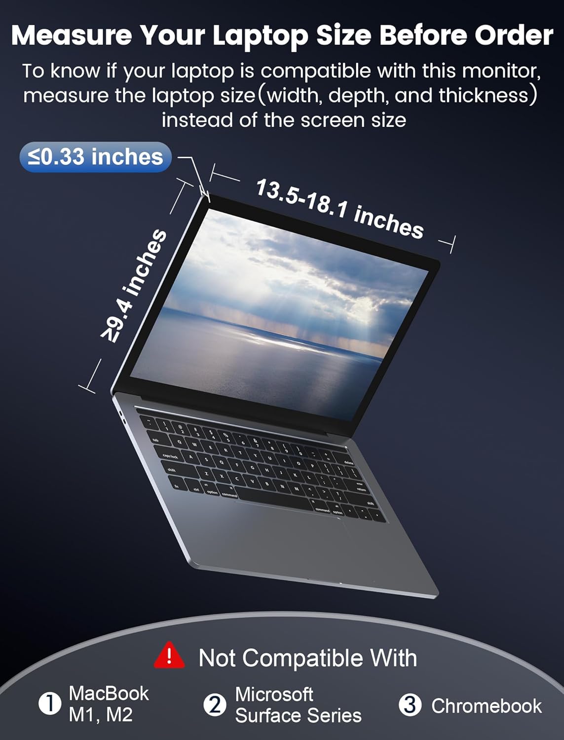 Universal Compatibility: This dual monitor offers broad compatibility, allowing it to work with a range of devices including Windows, MacOS (only for M1 Pro and M1 Max), Android, Switch, and Xbox, among others. Effortlessly connect the external monitor screen to your preferred device and enjoy an extended display with ease. Experience the versatility and flexibility of connecting to various platforms and devices. (Note: Please ensure compatibility and check laptop size before making a purchase.)
