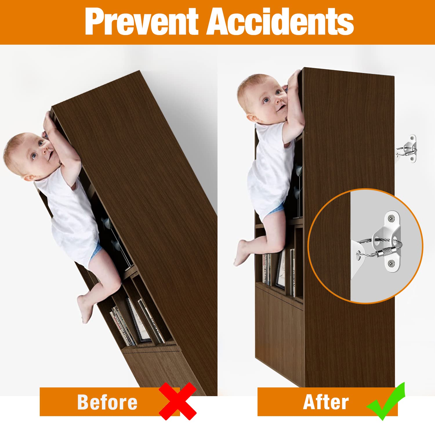 Baby Safety Guard: Let your little one explore and climb to their heart’s content! Baby proof furniture anchors help keep furniture secure from the potential tip-over hazard of curious children. This anchor will help keep furniture upright even if your children pull out the dresser drawer to form a ladder and climb onto the dresser for fun.