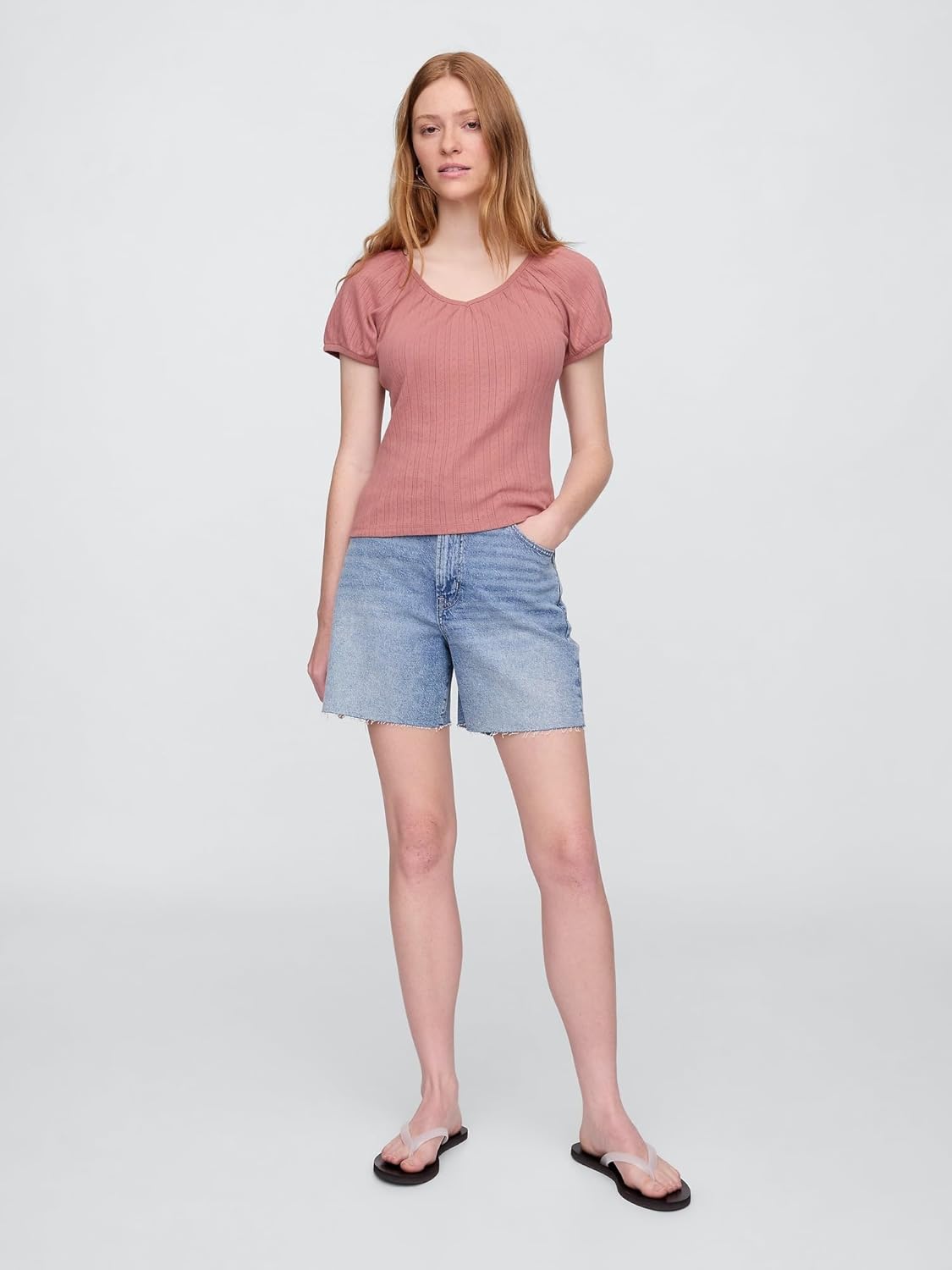 GAP Women’s Pointelle V-Neck Tie Front Knit Top
