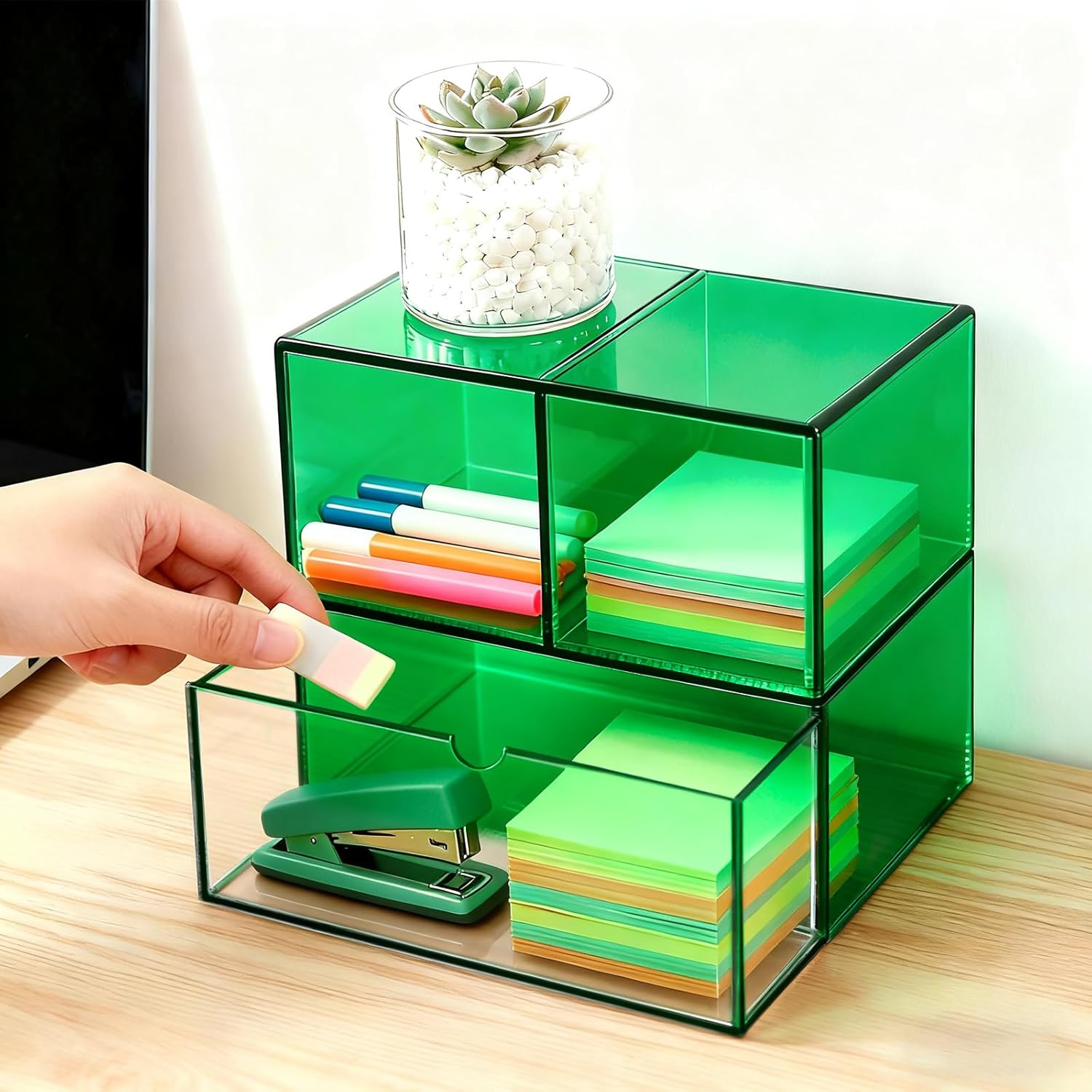 Gelite Desk Organizer with 3 Storage Drawers for Makeup Office Acrylic Desktop Drawer Organizer for Vanity Office Organization and Storage Box, Emerald Green