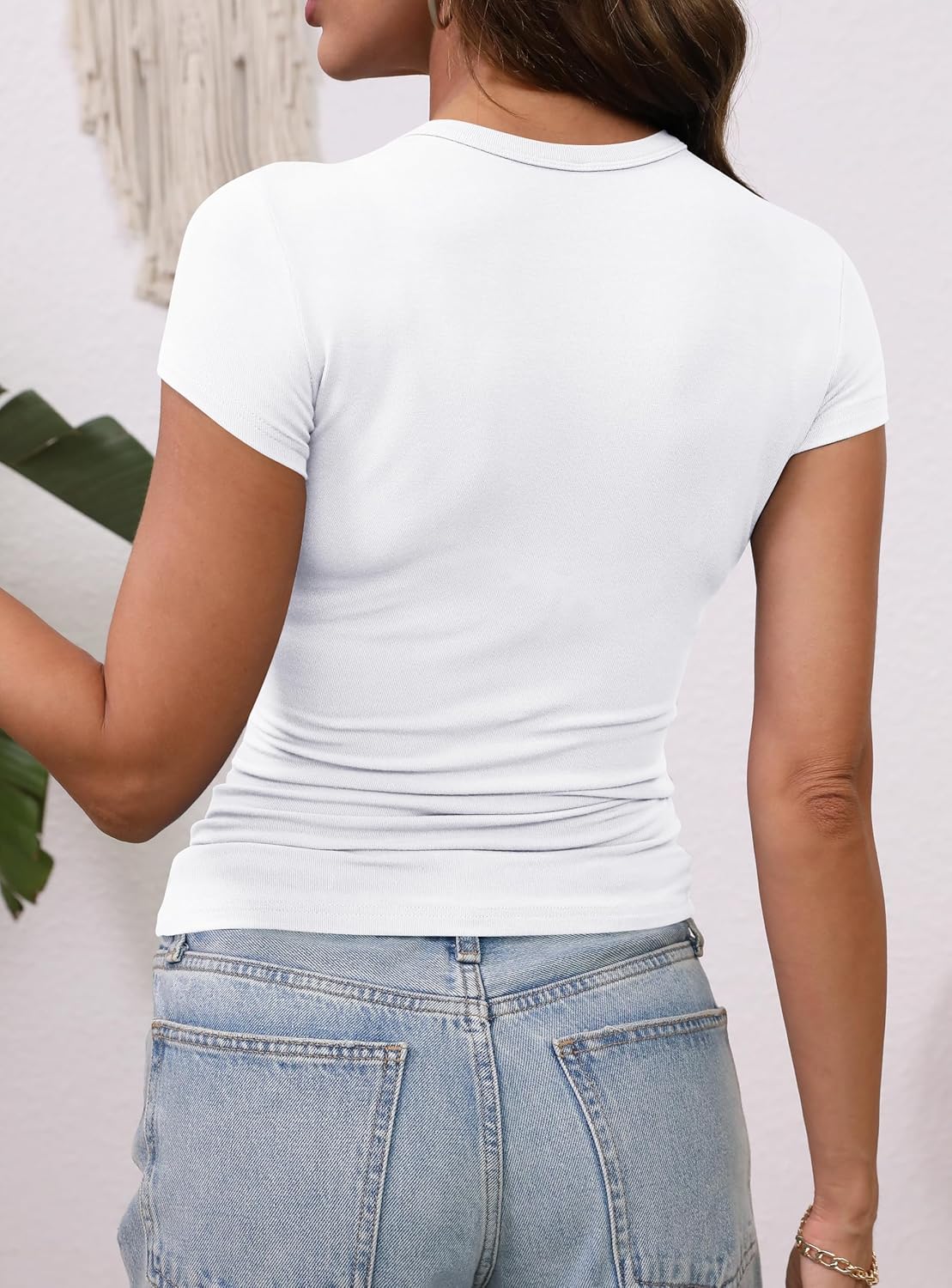 GEMBERA Womens’ Stretchy V Neck Short Sleeve Gym Workout Form Fitted Casual Basic Top T-Shirt