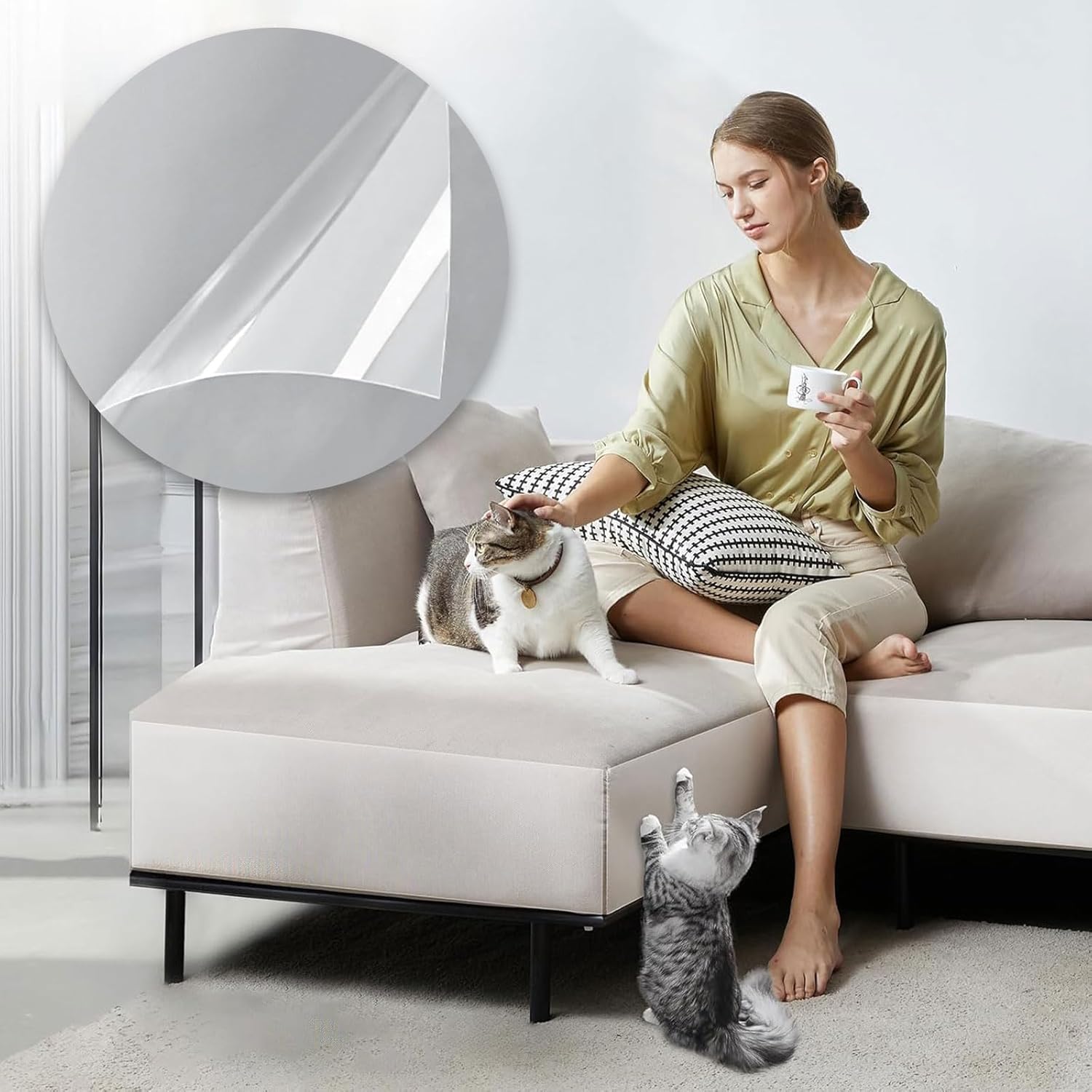【Durable PVC Thickness】-Our couch protector from cat claws features a sturdy PVC build, thick enough to withstand relentless cat claws. It’s your furniture’s unbeatable shield against damage. Invest in powerful, long-lasting protection.
