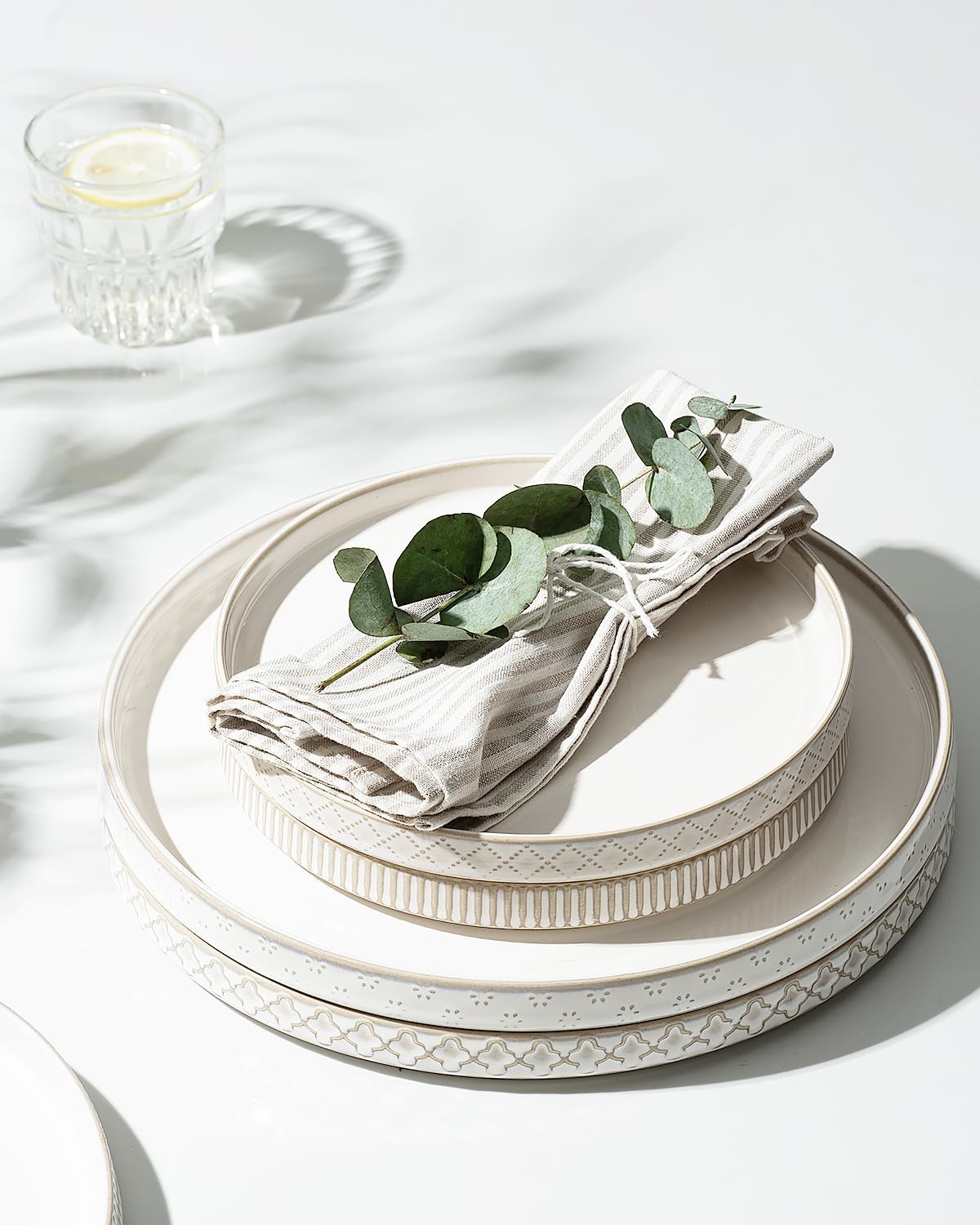[Complete Dinnerware Set for 4] Includes 4 pieces each of 10.5″ dinner plates, 8″ salad plates, and 6″ soup bowls, perfect for everyday dining or special occasions