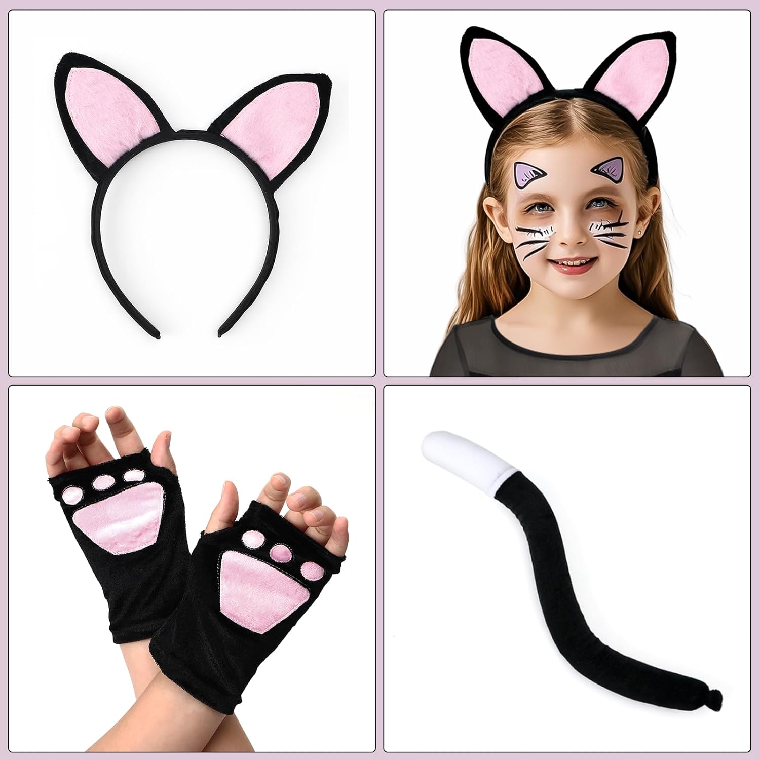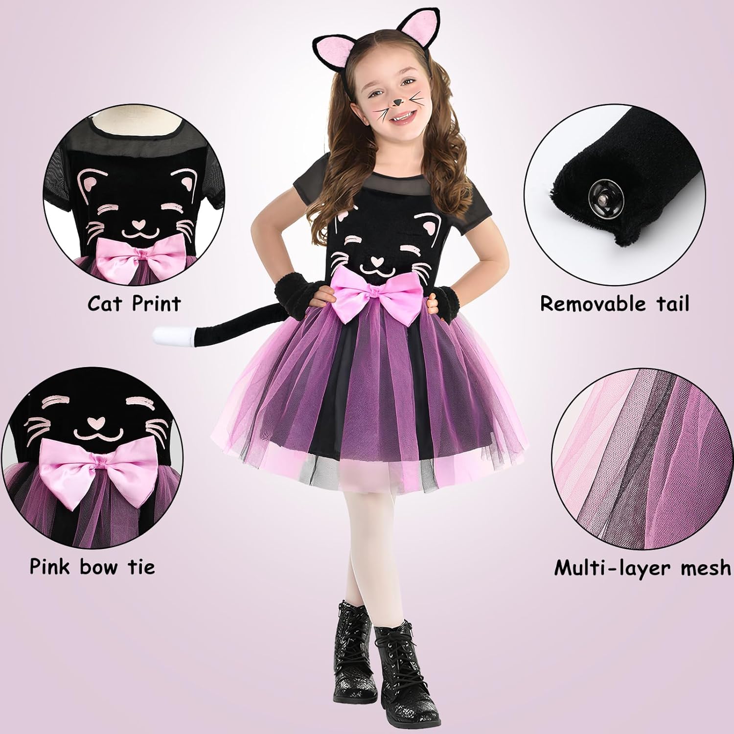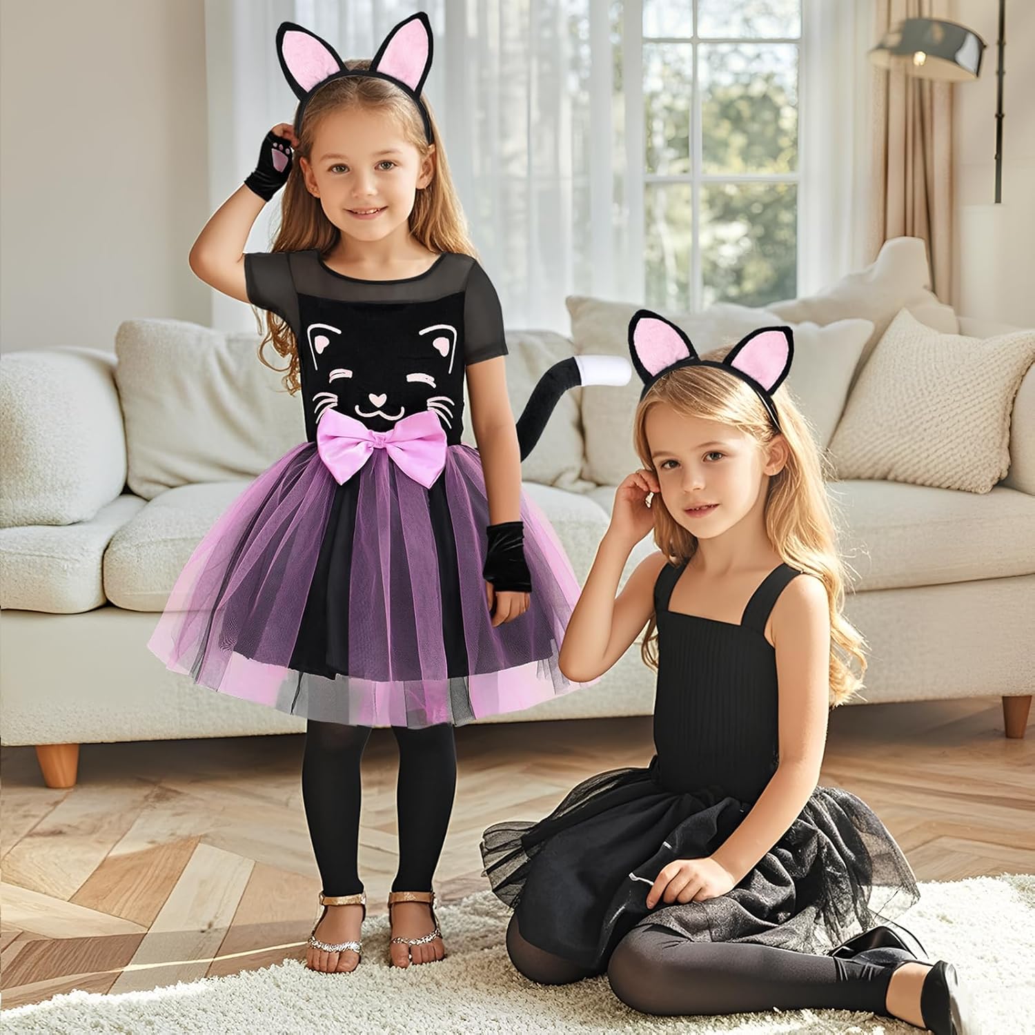 Girls Cat Costume Kids Toddler Kitty Dress Costumes Accessories Cat Ears Headband Gloves Tail Halloween Dress Up Cosplay