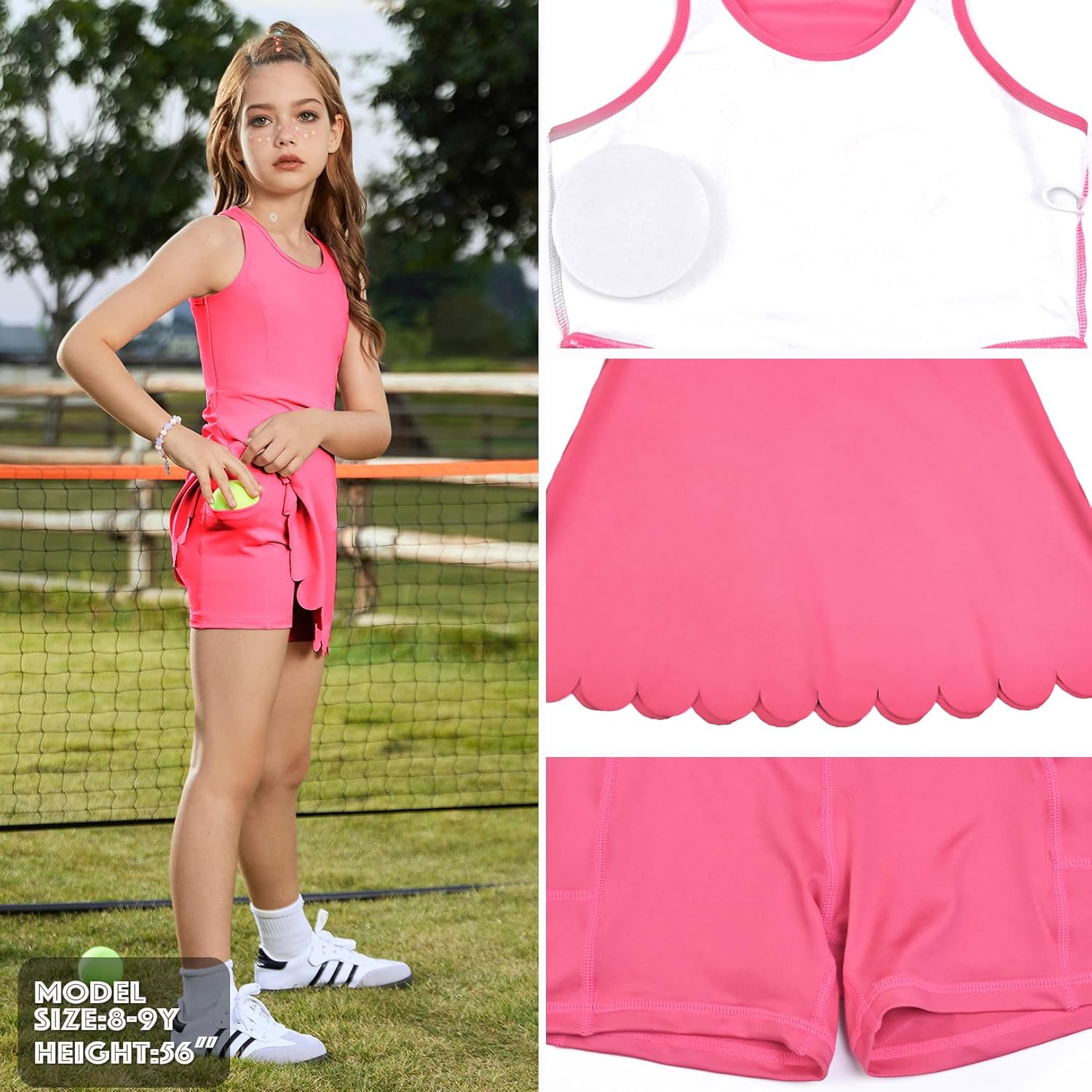 Girls Tennis Dress Sleeveless Pickleball Athletic Dress Golf Outfit with Detachable Built-in Bra & Shorts Pockets