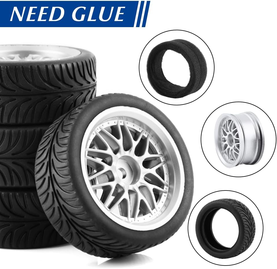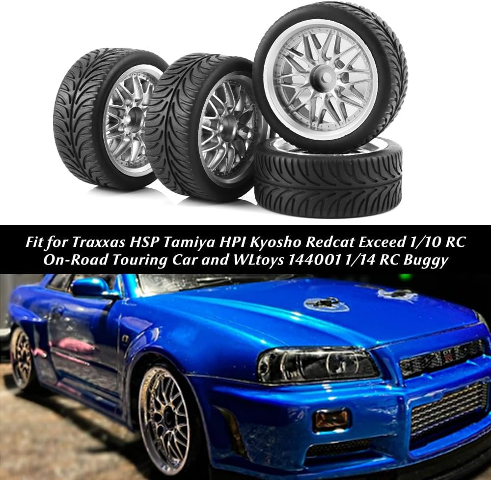 1/10 On-Road Tires: Compatible with Traxxas HSP, Tamiya, Kyosho, Himoto, HPI, Redcat, and Exceed 1/10 RC on-road car; Also compatible with Traxxas 1/16 Slash, WLtoys 1/14 144001, and 1/18 WLtoys A959 RC off-road buggy.