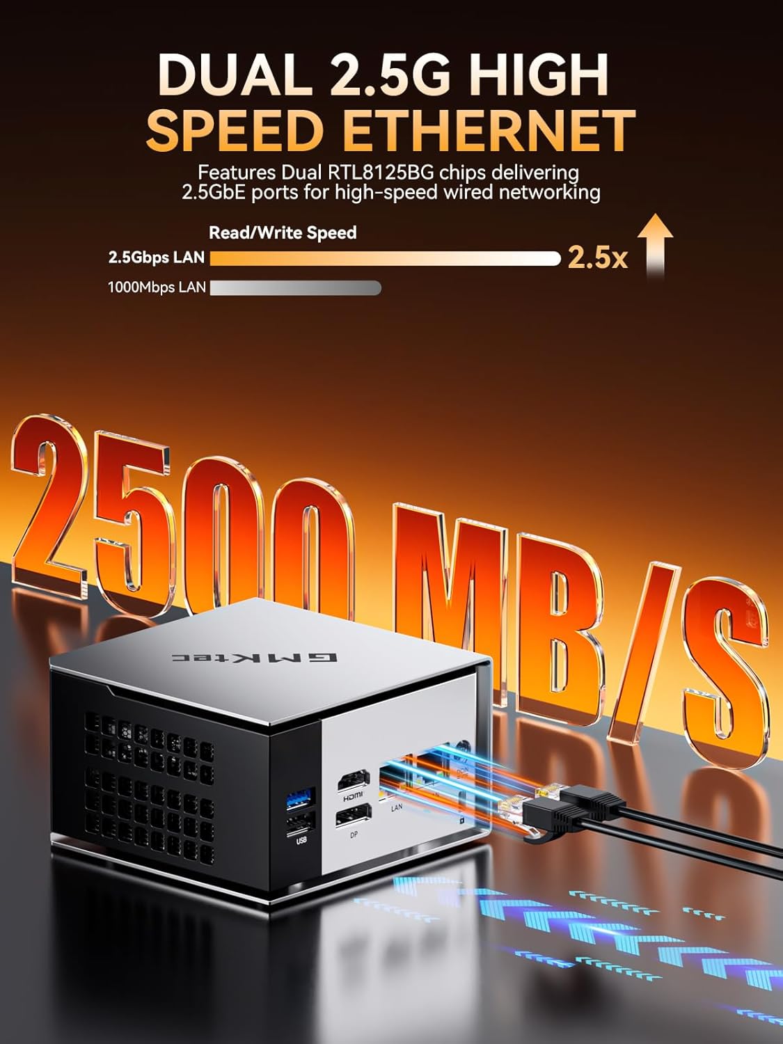 HYPER-SPEED TRANSFERS & DUAL LAN POWER – Transfer large files in seconds with USB 3.2 Gen2 ports (10Gbps) and WiFi 6E. The dual 2.5GbE LAN ports enable advanced networking, link aggregation for double the speed, or hosting a powerful server, all from a device that fits in your hand.