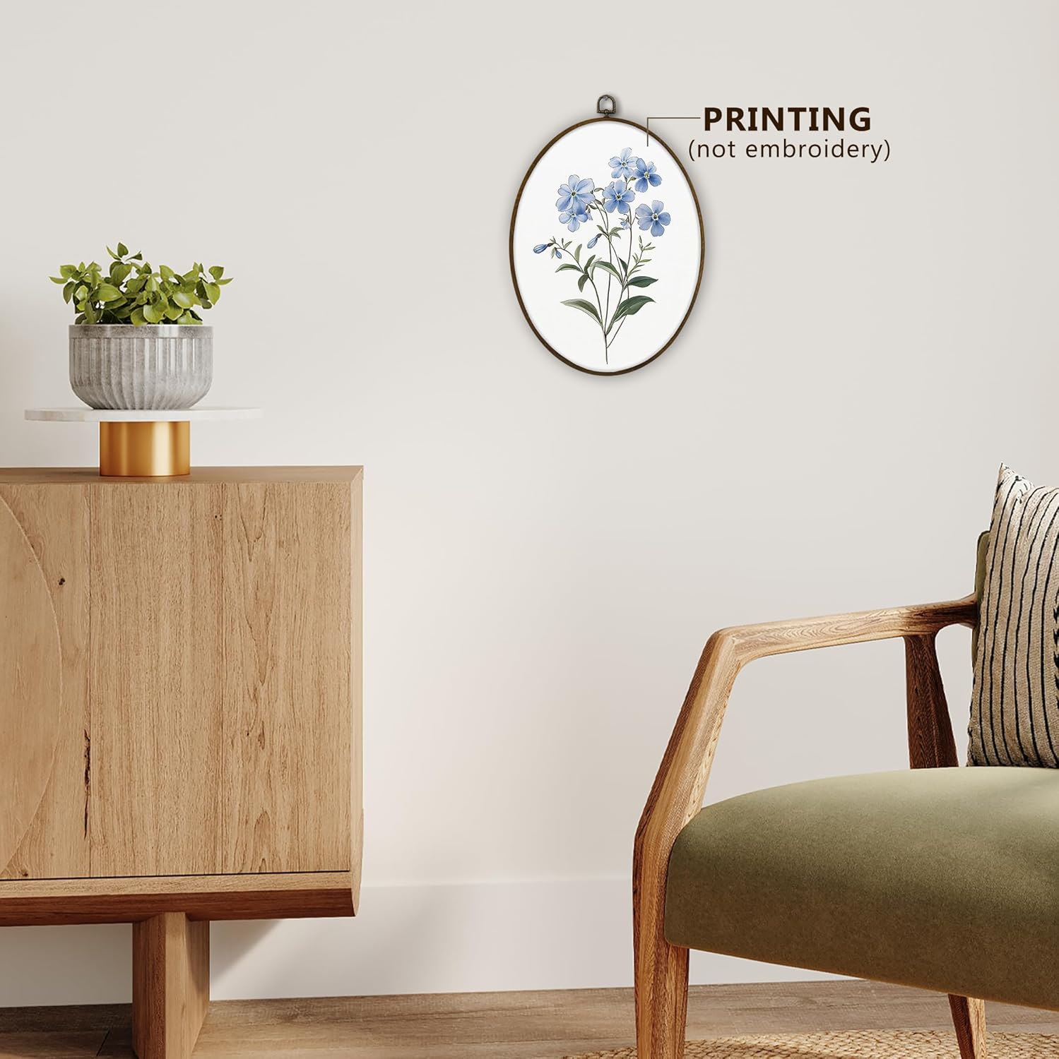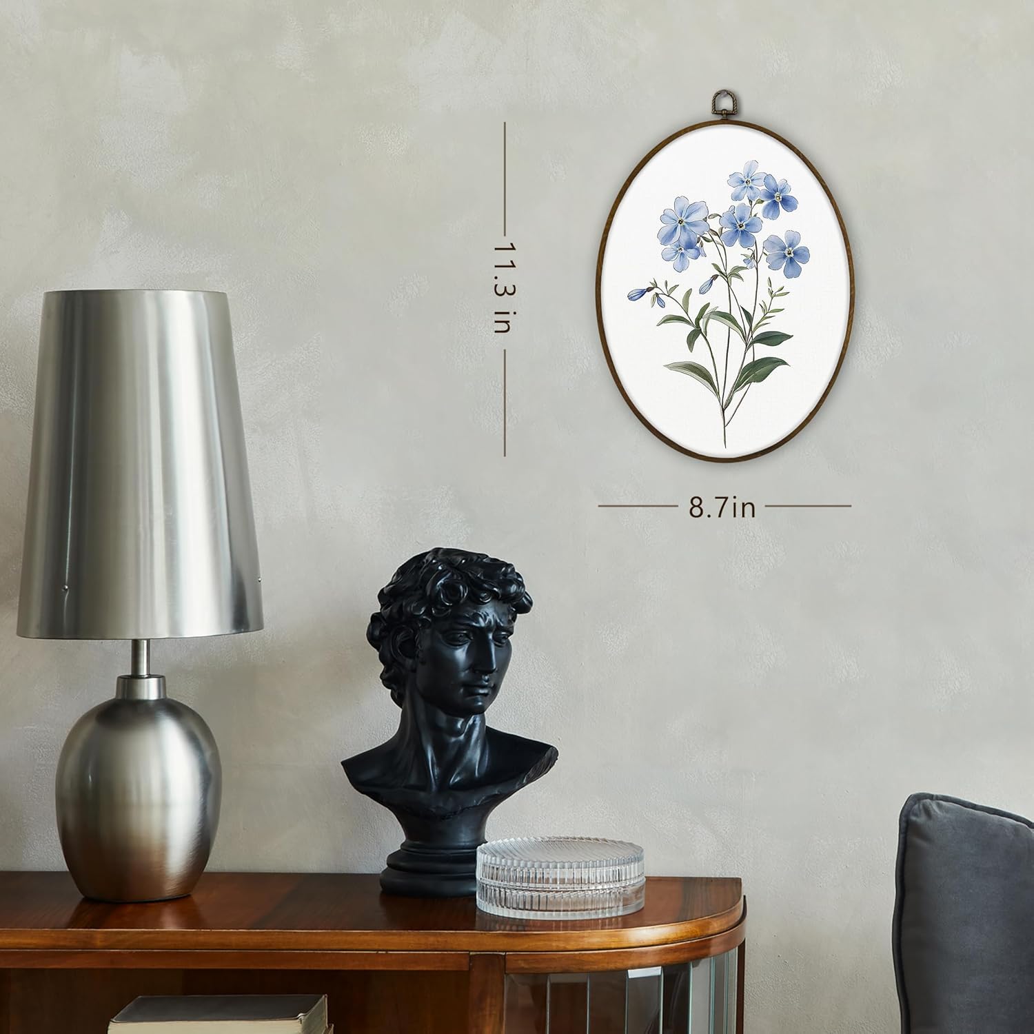 Gnmduw Blue Hydrangea Floral Oval Wall Art Framed, Blue Hydrangea Flower Canvas Prints Hanging Decor Decorations, Coquette Hydrangeas Wall Art Decor for Bedroom Home Bathroom, 8.7×11.3 Inch