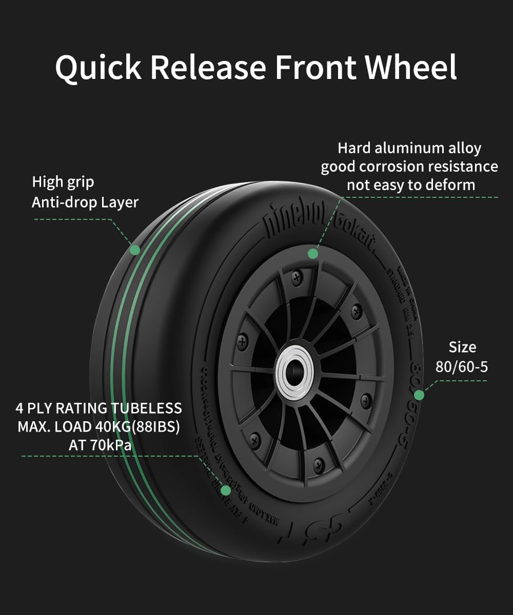 【Versatile Compatibility for a Customized Experience】Gokart Tires are designed with versatile compatibility, ensuring they seamlessly fit all of Ninebot Gokart models. Package list: 80/60-5 Front Wheel Assembly 2 pieces