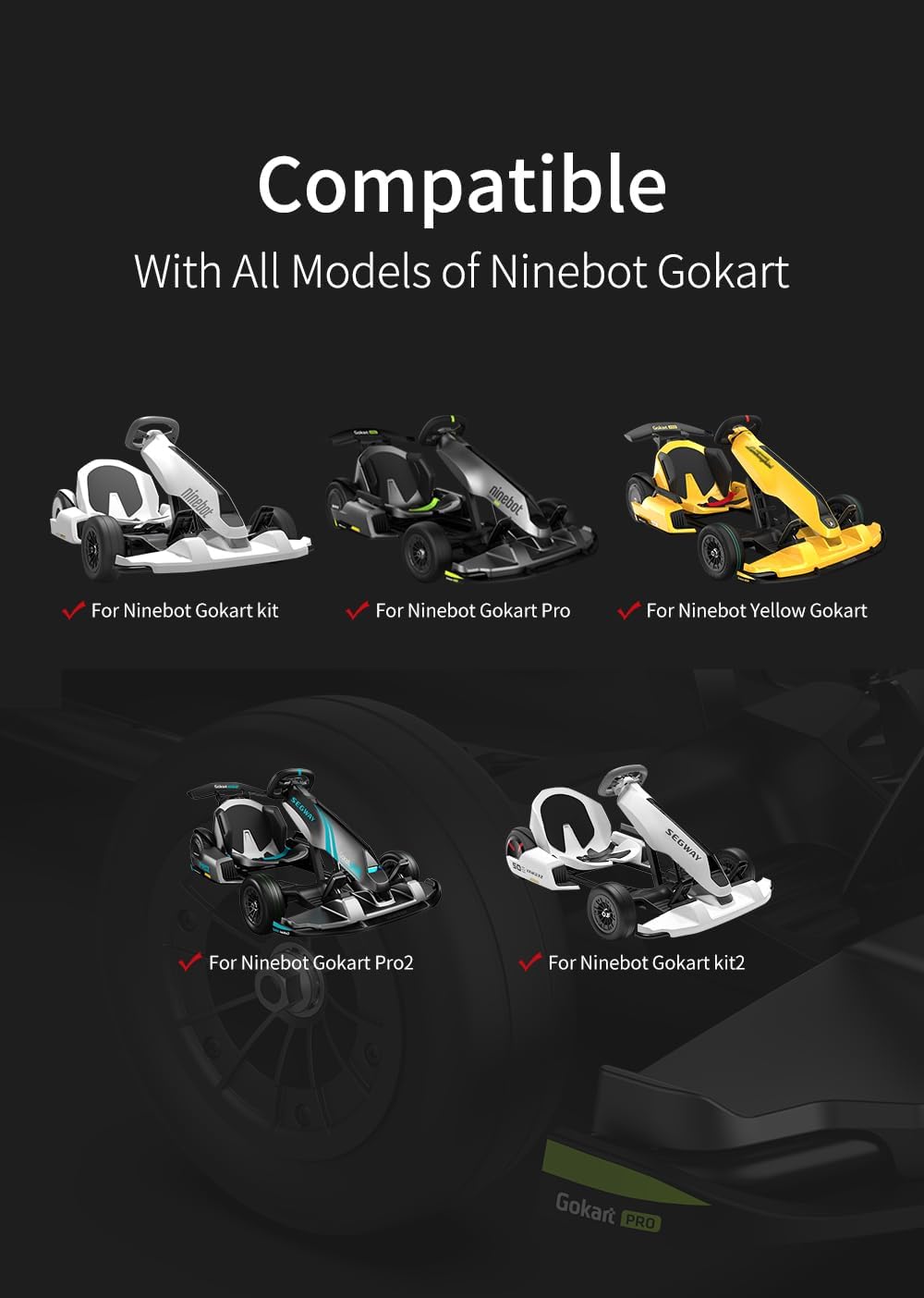 【Outstanding Compatibility】Our Front Wheel Assembly are tailored for Gokart Kit, Gokart PRO/ Pro2, Suitable for all Segway Ninebot Gokart kits. Customized for excellent adaptability. These tires are made of reinforced premium rubber for unmatched traction, ensuring a secure grip on a variety of surfaces
