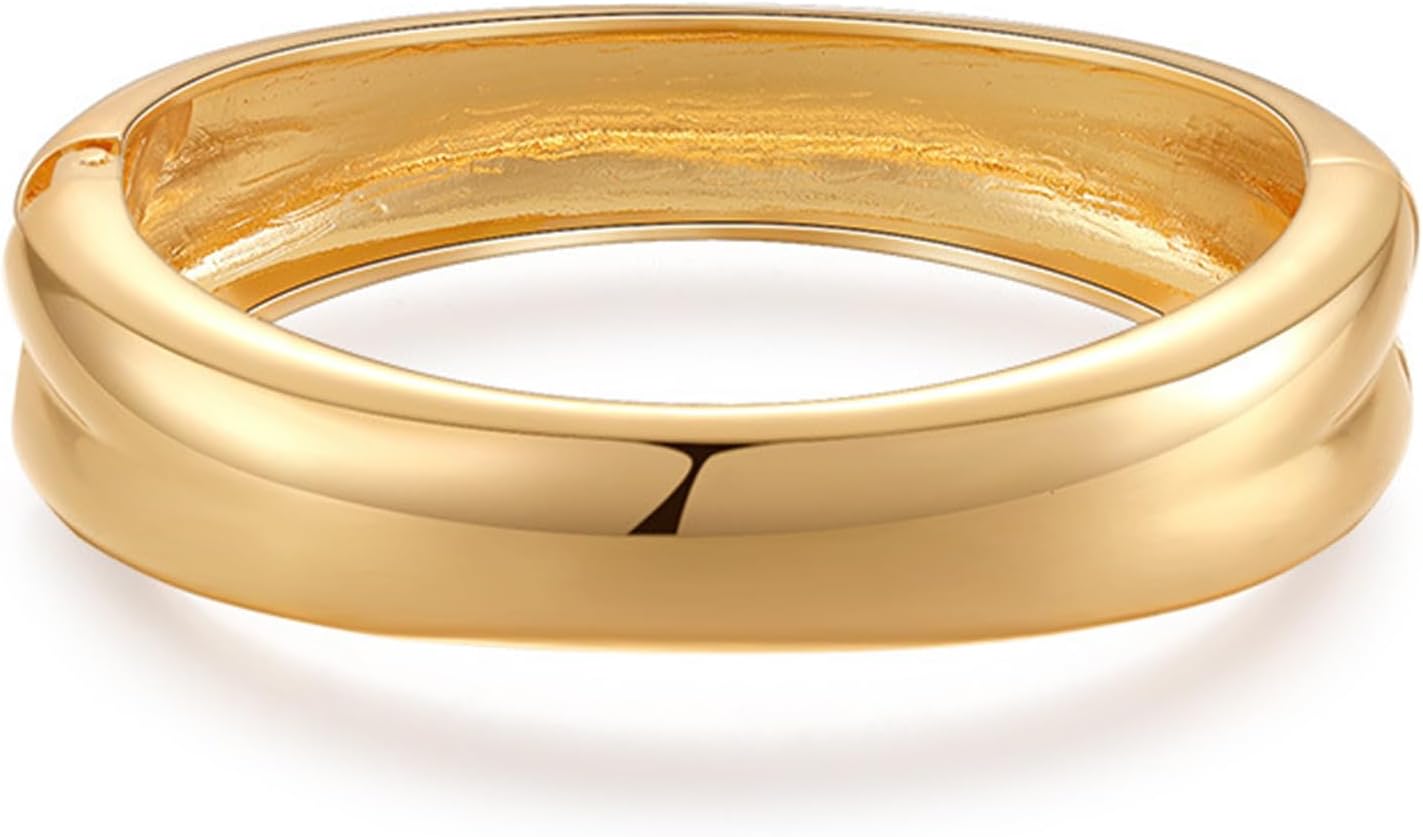 Gold Plated Chunky Bracelets for Women-Gold Open Bangle Cuff Waterproof Birthday Mother’s Day Valuntine’s Day Christmas Gifts