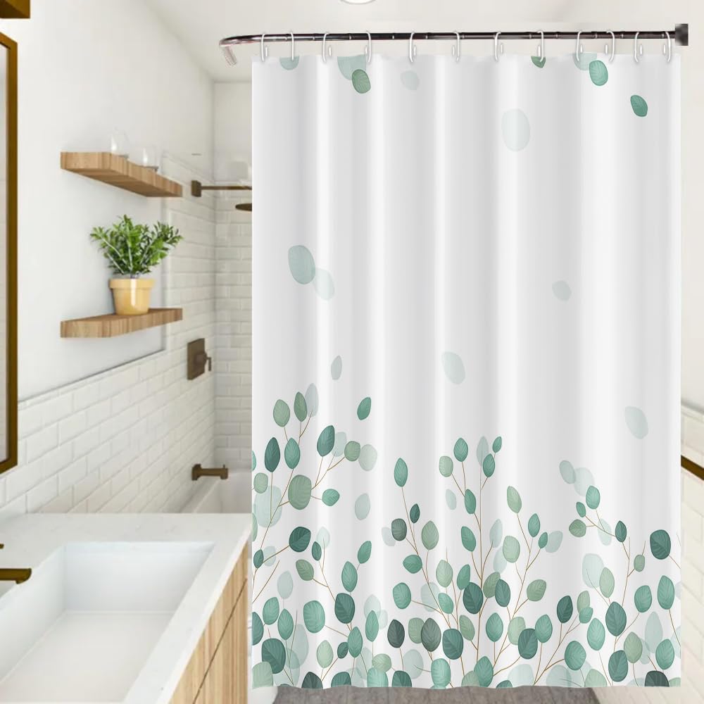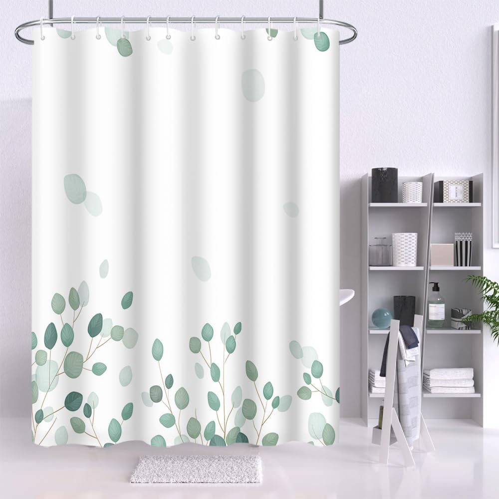 Green Eucalyptus Leaves Shower Curtain Modern Minimalism Branches Leaf for Bathroom Shower Curtain Decor Waterproof Polyester Fabric with Hooks, 72×96 Inch