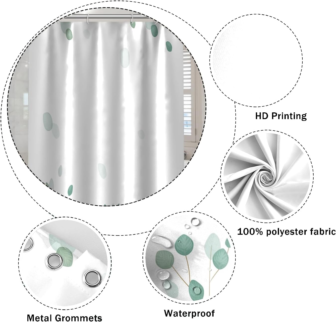🛀【Premium Material】: The shower curtain is made of smooth and soft 100% polyester fiber, quick-drying and breathable.