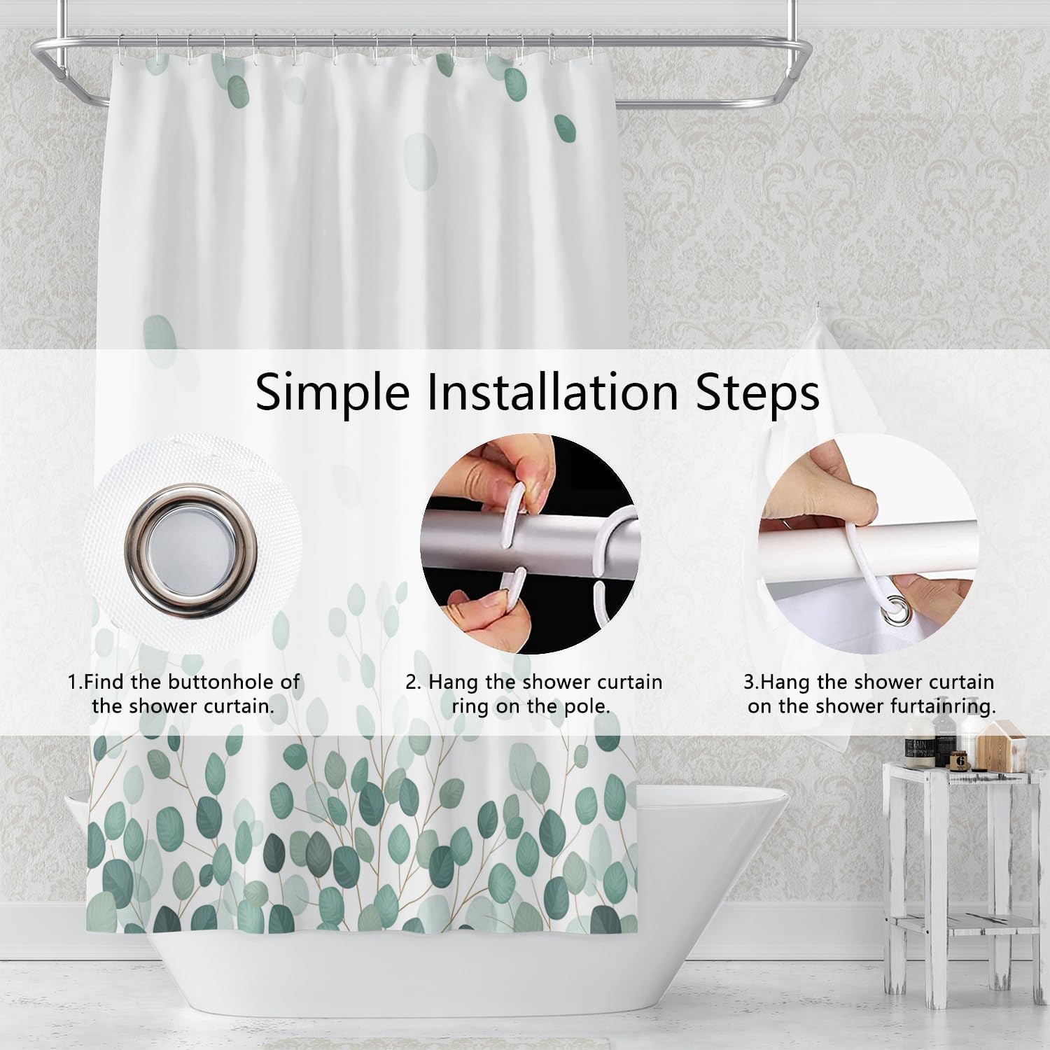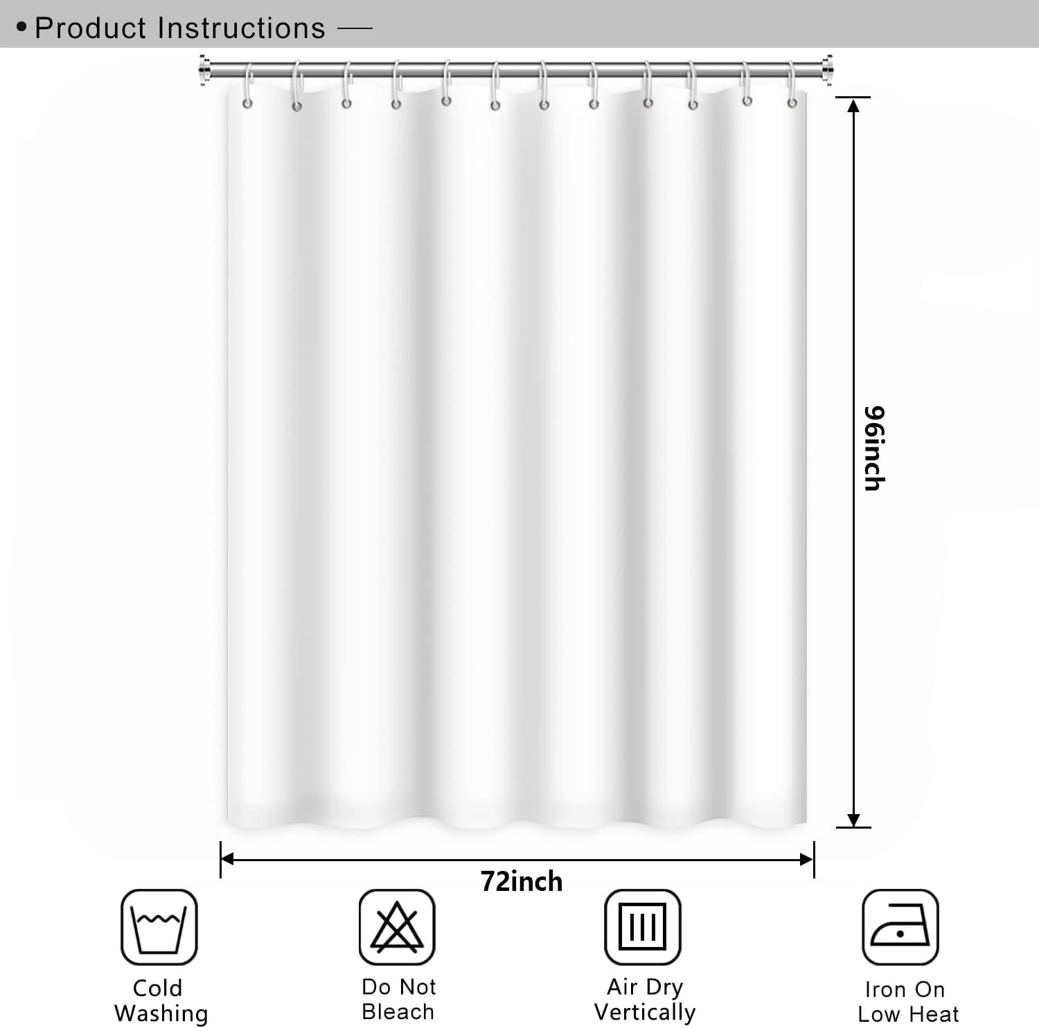 🛀【Package&Size】: One set of 72W x 96H (180cm x 243cm) shower curtain and comes with 12 C-shaped hooks, easy to install and slide.