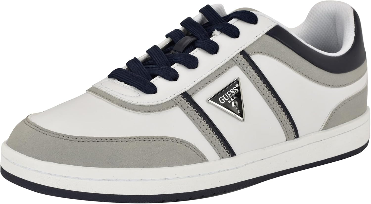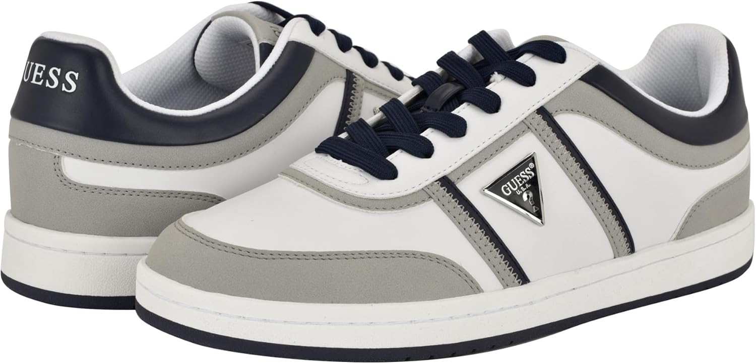 This fashion lace up sneaker is complimented by a signature brand triangle on the side. The color blocking gives this shoe a slight modern look. The added memory foam insole provides comfort. Est. 1981, Guess is a global lifestyle brand and a symbol of a young, adventurous lifestyle.
