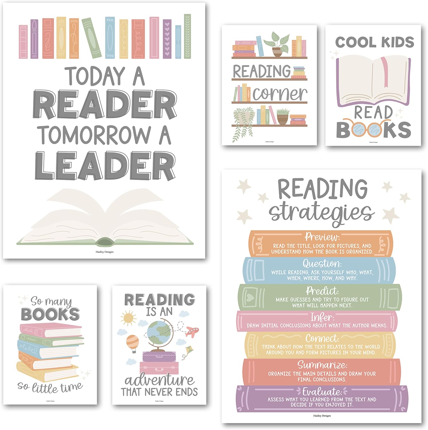 Hadley Designs Motivational Reading Posters For Classroom Elementary –6 Reading Strategies Posters For Classroom, Read Corner School Library Decor, Wall Read Sign, Boho Bulletin Board Decorations