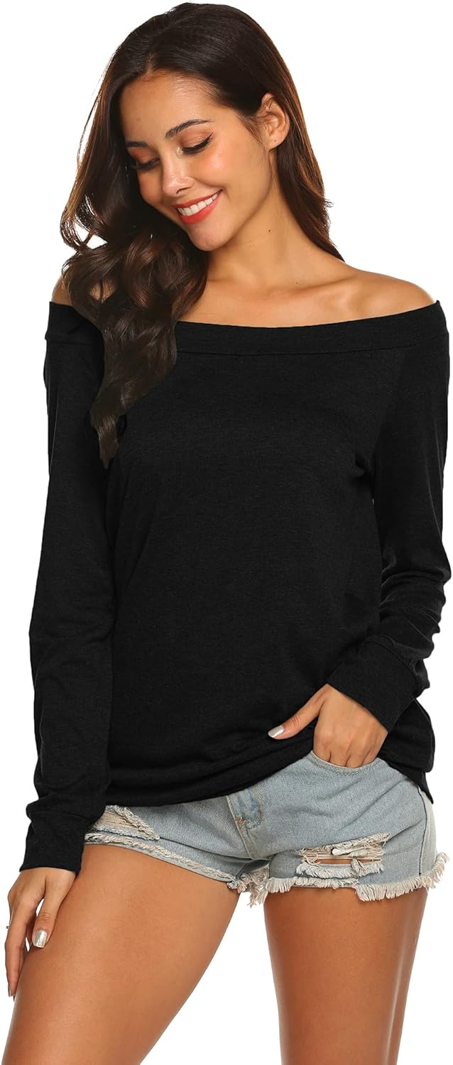 Long Sleeve Tops for Women Spring Fall Fashion Off the Shoulder Shirts