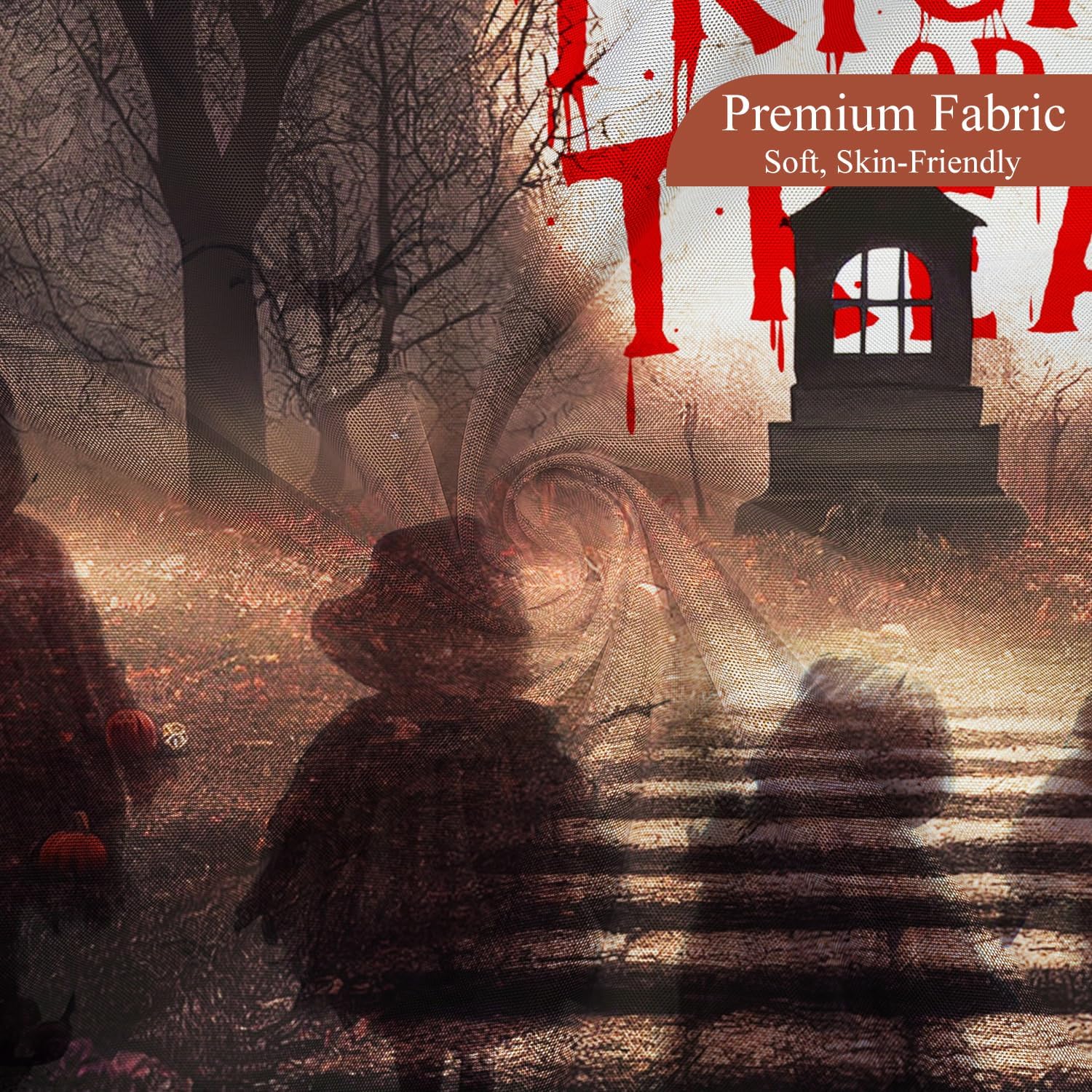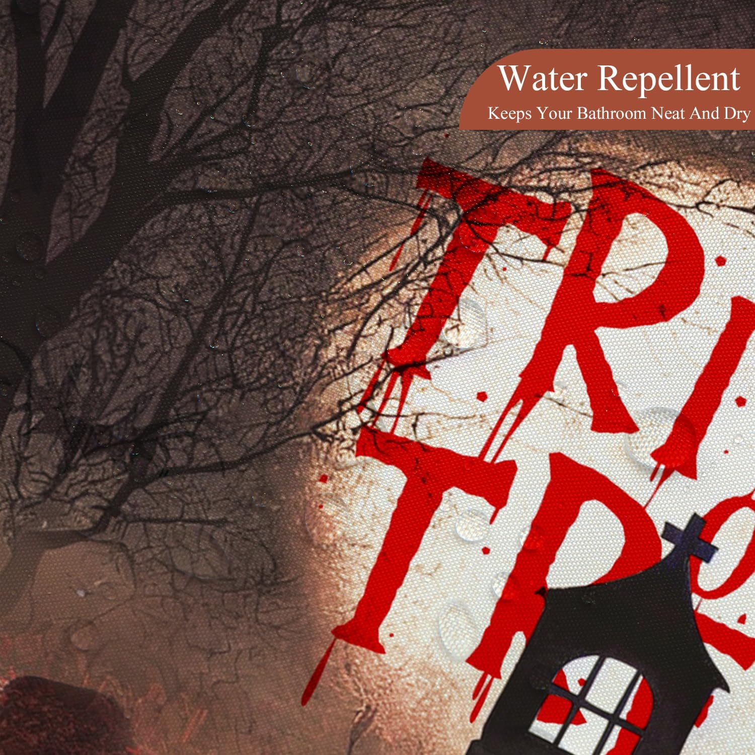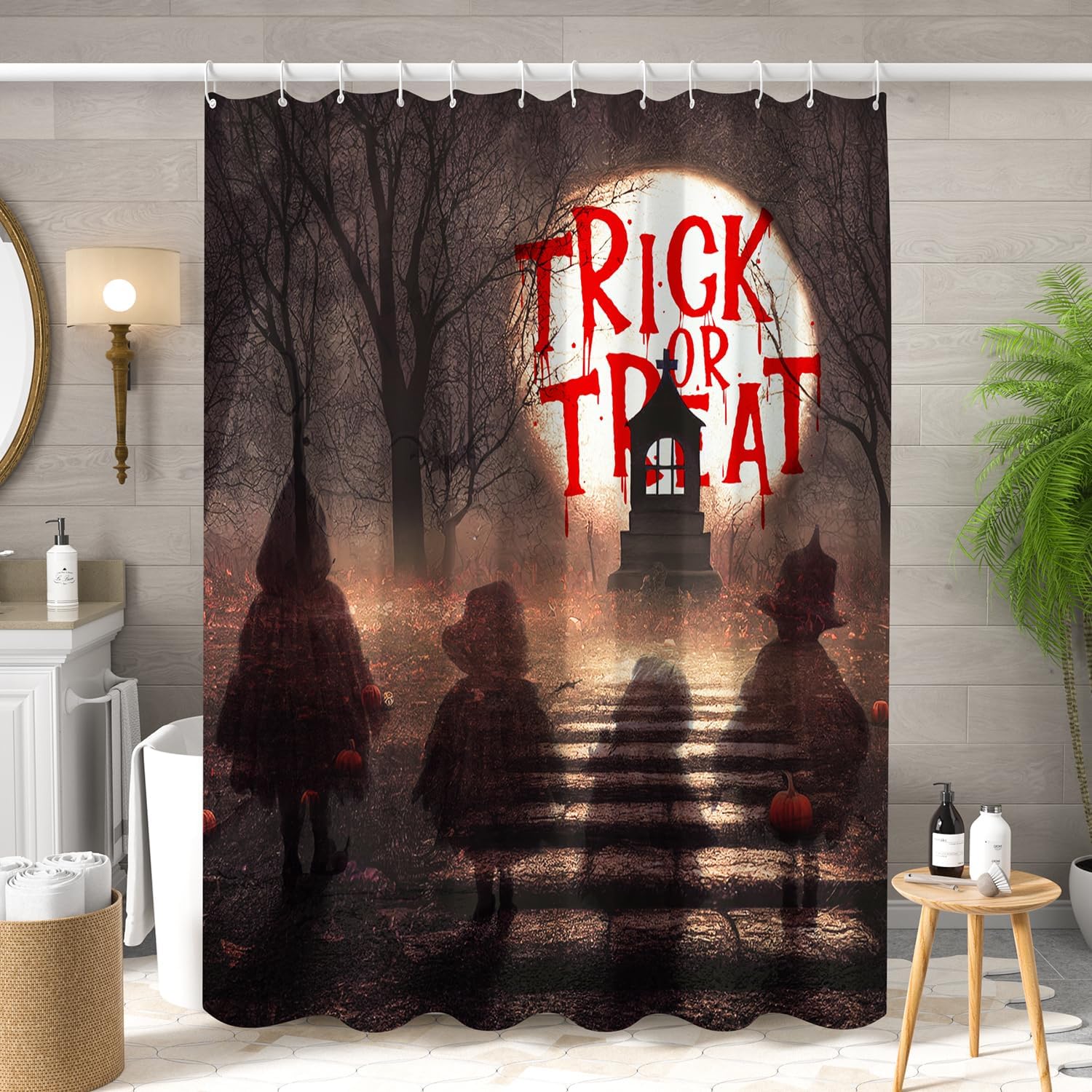 Halloween Trick or Treat Shower Curtain Scary Forest Night Ghost Full Moon Cemetery Bathroom Curtain Waterproof Bath Decor Polyester Fabric Curtains Set with Hooks 72×72 inch
