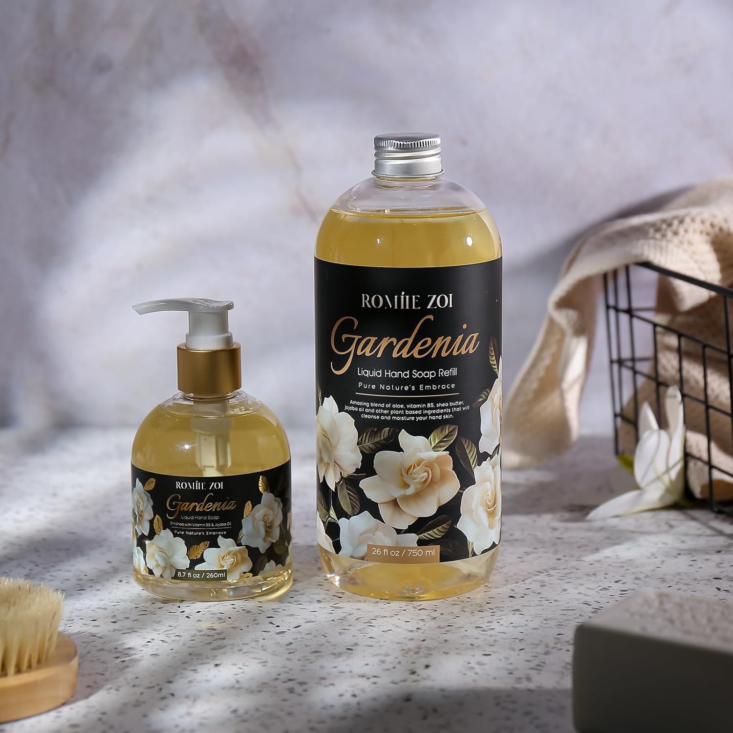 Fresh Gardenia Fragrance: Infused with premium fragrance oils and natural ingredients, Romiie Zoi Liquid Soap delivers a refreshing, natural gardenia floral fragrance, bringing the charm of botanicals to your fingertips. Leaves hands soft, clean, and delicately scented.