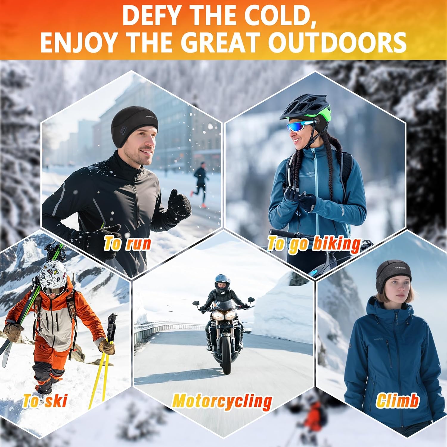 HASAGEI Winter Thermal Skull Cap for Men Windproof Helmet Liner with Full Ear Coverage & Eyewear Slots, Cycling Motorcycle