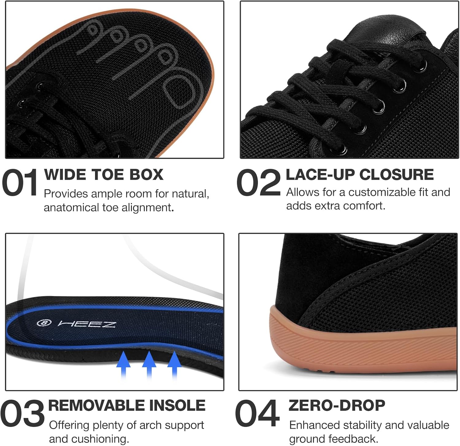 HEEZ Mens Wide Toe Barefoot Shoes 2 in 1 Slip on Mules and Breathable Sneakers for Men Lace Up Comfortable Walking Shoes