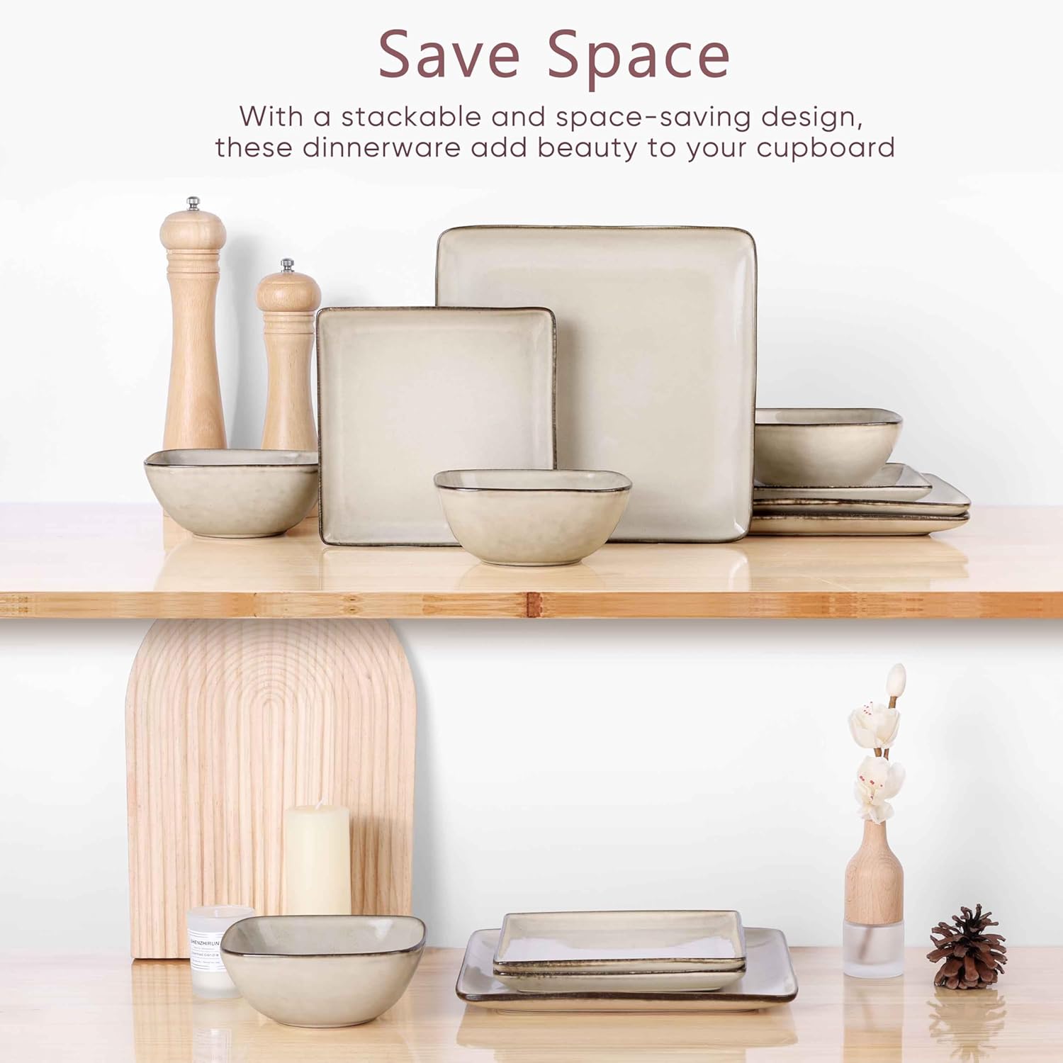 Space saving and thoughtful choice, dinnerware set can be neatly stacked together to save cabinet space, and our packaging features a shatter resistant design, with each bowl separated by thick cardboard to prevent collisions and ensure that items are in perfect condition, which is ideal for housewarming, wedding, gatherings, holidays and anniversary