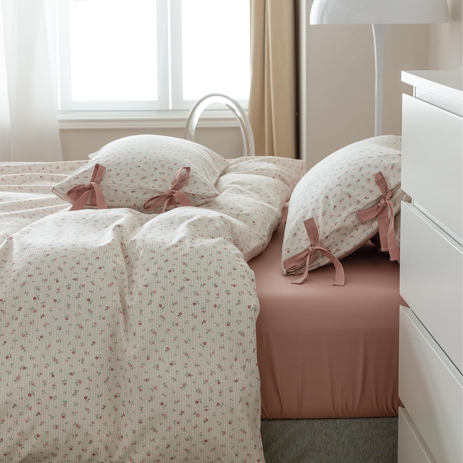 VIBRANT COLOR COMFORTER: boho style coquette bedding comforter set feature with pink floral botanical printing bring a touch of simply casual yet boho vibes to abode with your room’s decor.Laying on this cozy floral comforter,enjoy a good night of comfortable sleep.The comforter natural texture and delicate stitches of these comforter sets will make your room full of luxurious.