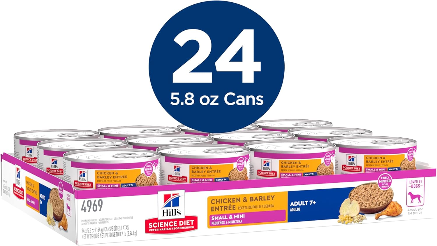 Hill’s Science Diet Small & Mini, Senior Adult 7+, Small & Mini Breeds Senior Premium Nutrition, Wet Dog Food, Chicken & Barley Loaf, 5.8 oz Can, Case of 24