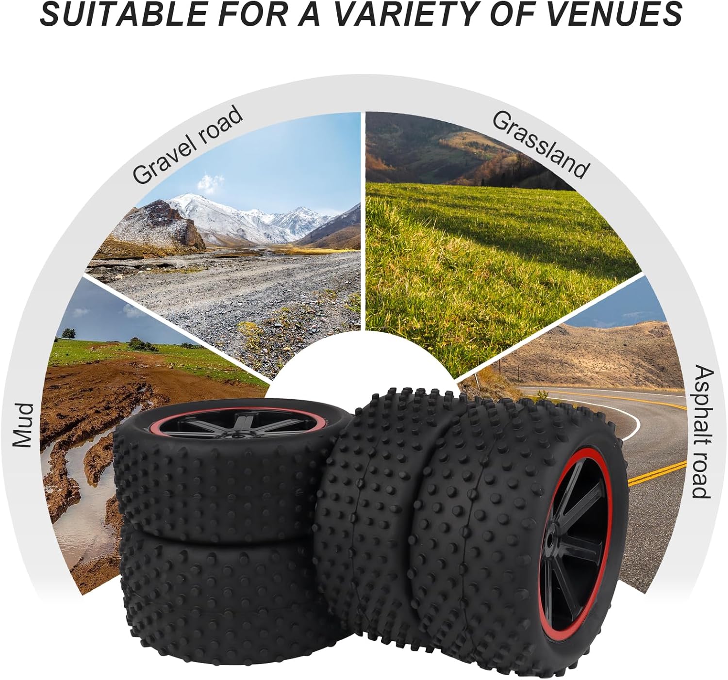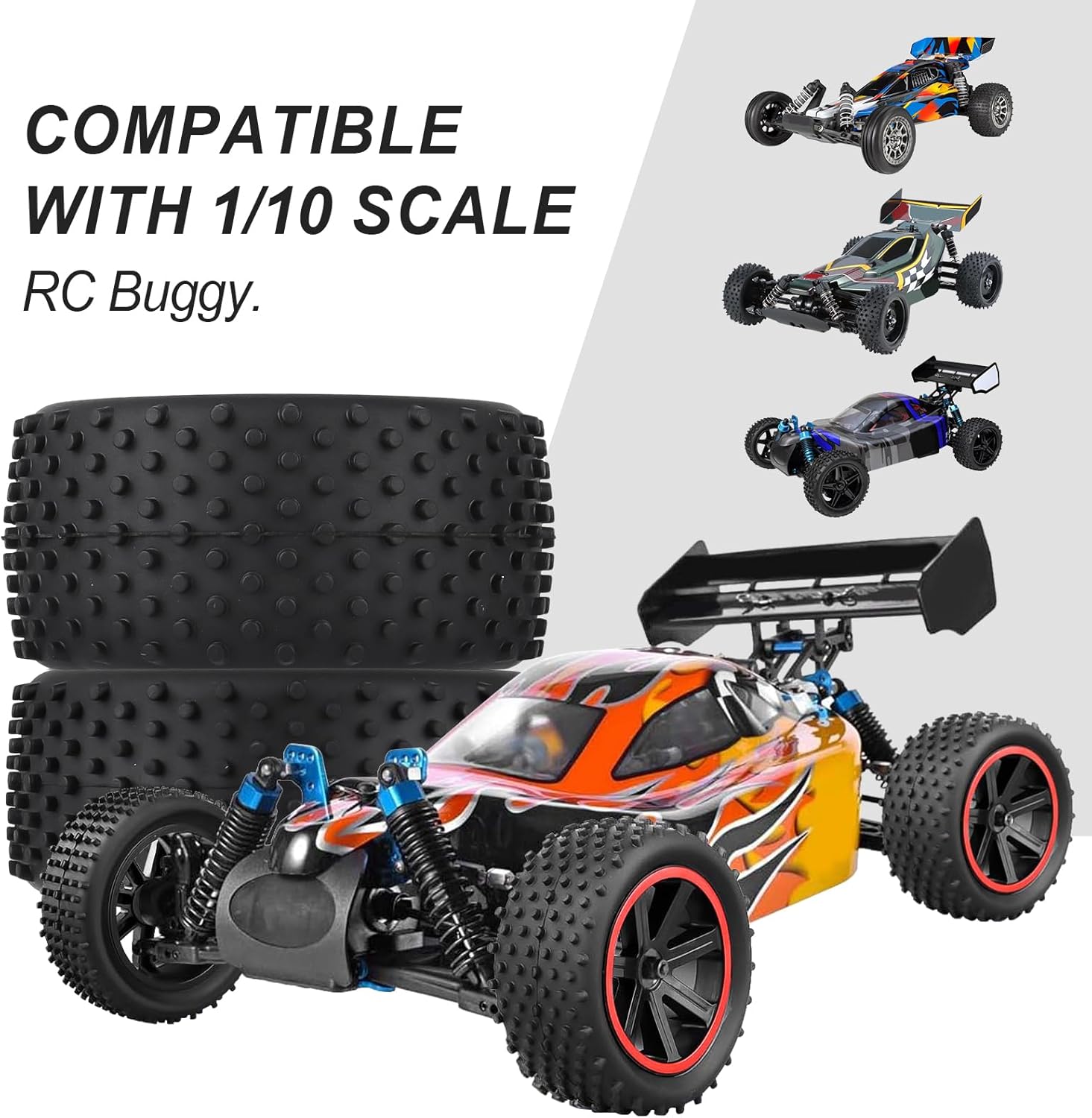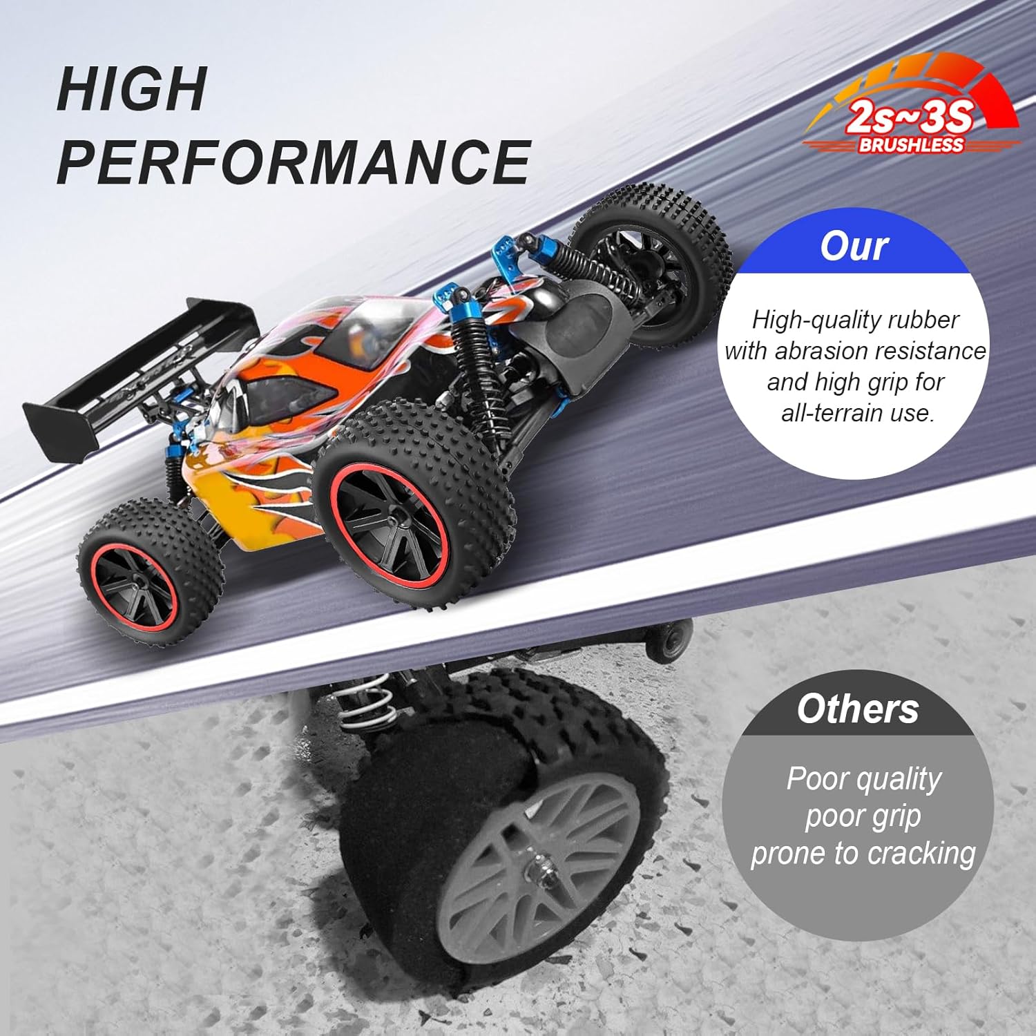 ✔ Great performance: the rims made from quality nylon plastic, not easy break, ideal for 2s 3s 4s brushless RC Buggy Car. Quality rubber & specialized tread pattern for great grip.