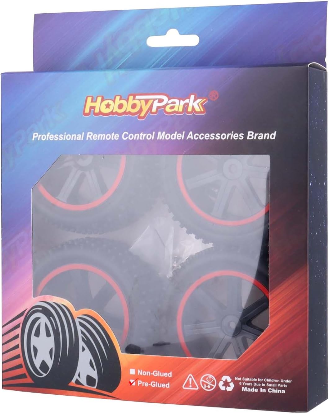 HobbyPark 12mm Hex PreGlued 1/10 RC Buggy Tires and Wheels Set Mounted for Traxxas Bandit VXL Losi Redcat Wltoys 144001 2S 3S Lipo Brushless Motor (Style A)
