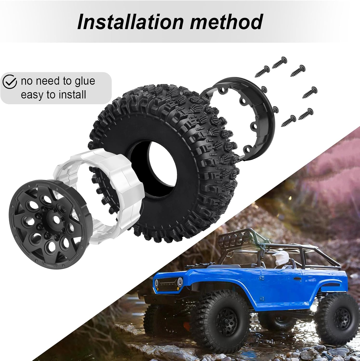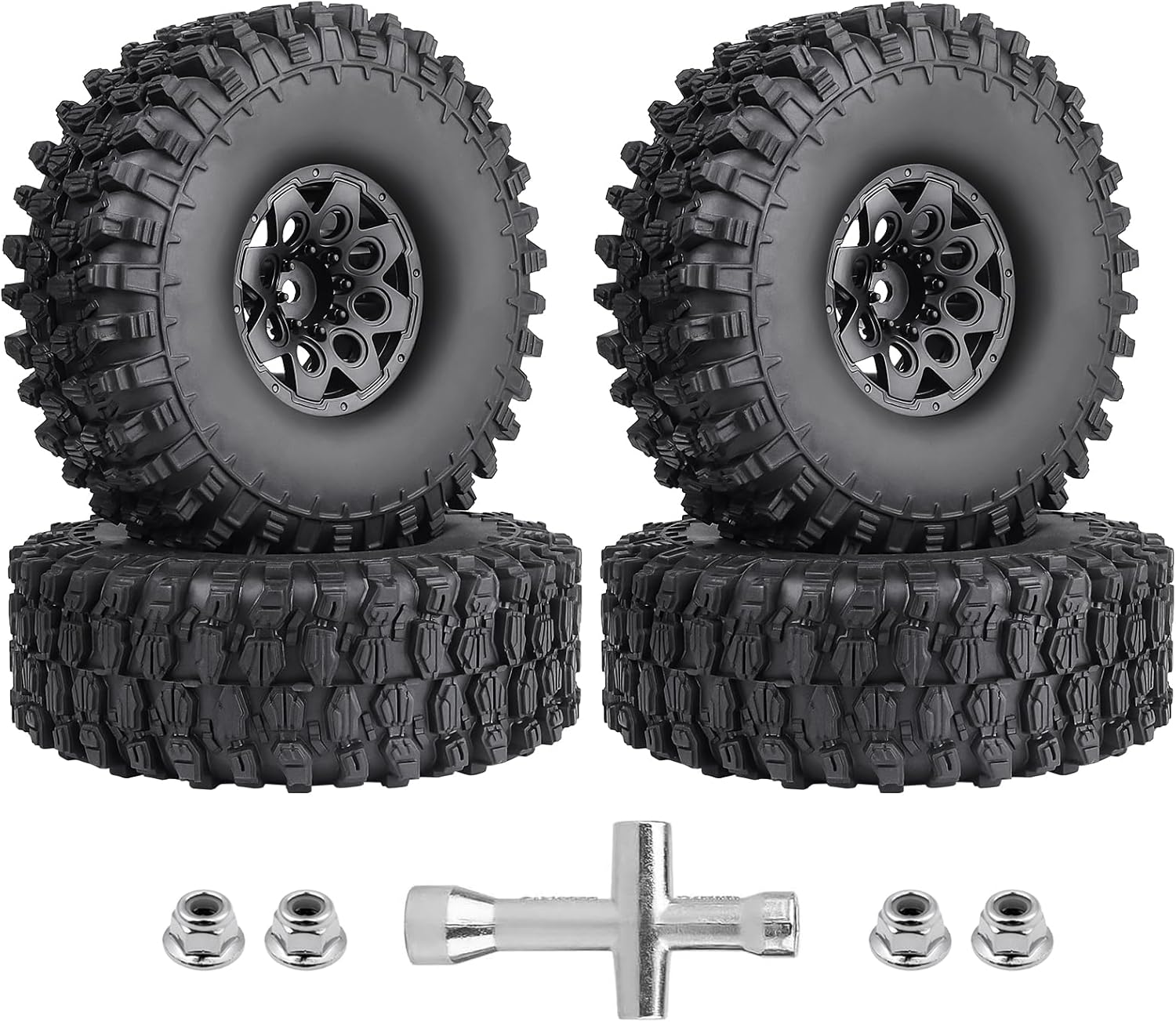 ✔ The RC 1.9 crawler tires are extreme scale all terrain tire, made of soft rubber, aggressive lugs and narrow, with good grip on Dirt, Rock, Loose wet mud, Grass.