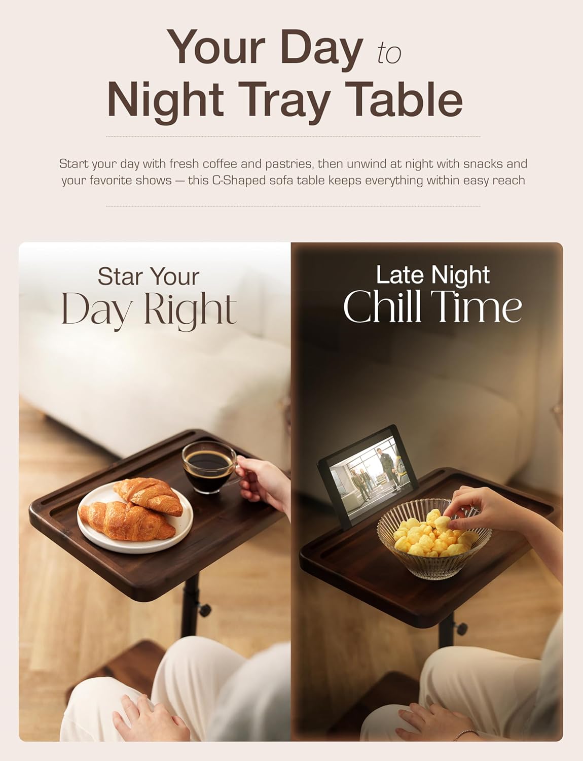Adjustable Height with Locking Knob: Easily adjust the table height with the smooth-turn knob. Use it as a recliner table, adjustable couch table, tv tray for eating, or a laptop stand for couch—always at the perfect height for your comfort