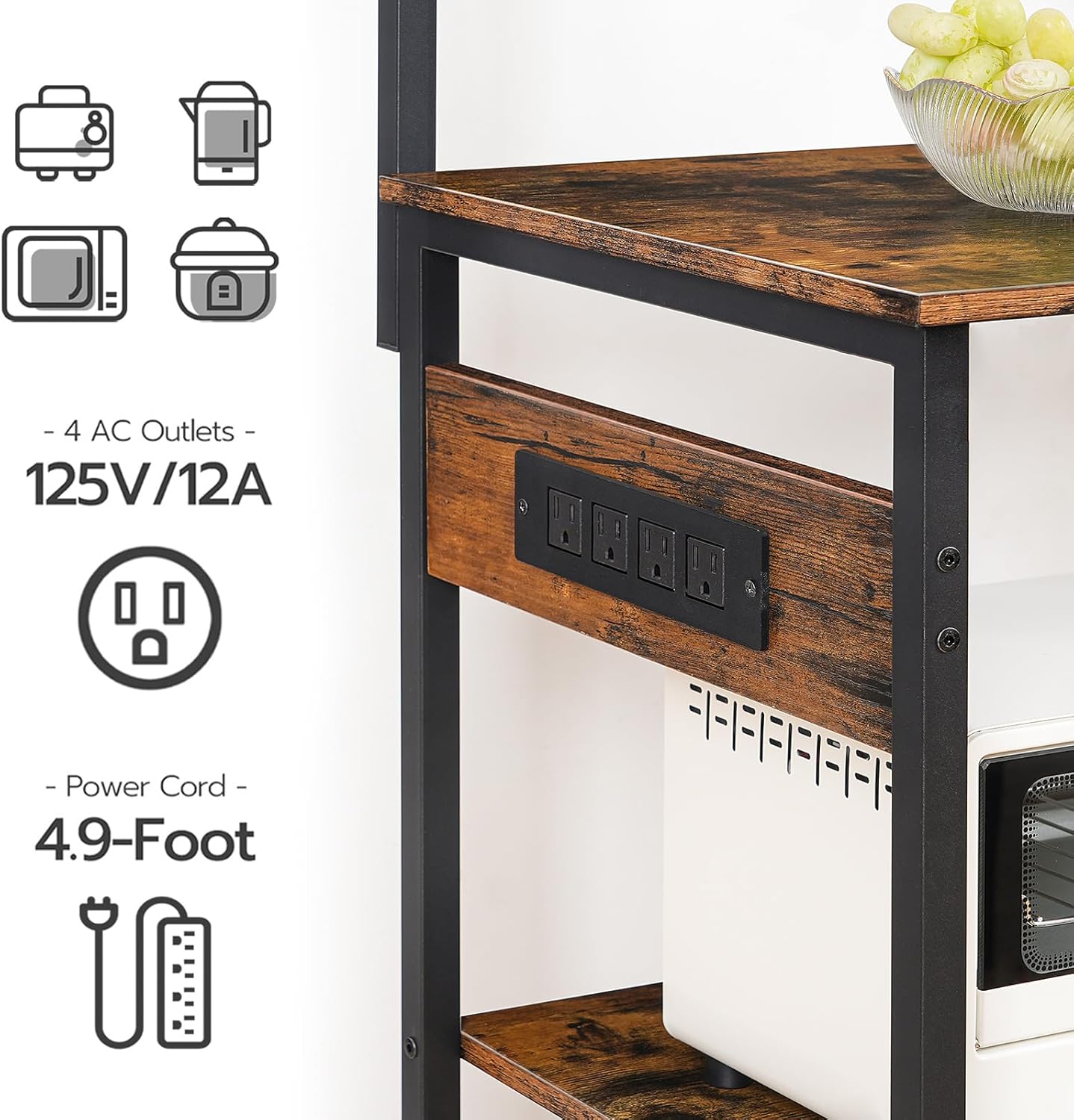 Bread Rack with Socket: The microwave stand with 4 standard outlets allows you to directly use multiple electrical appliances at the same time without the hassle of additional power strips. It also keeps all organized and tidy. Convenient and efficient