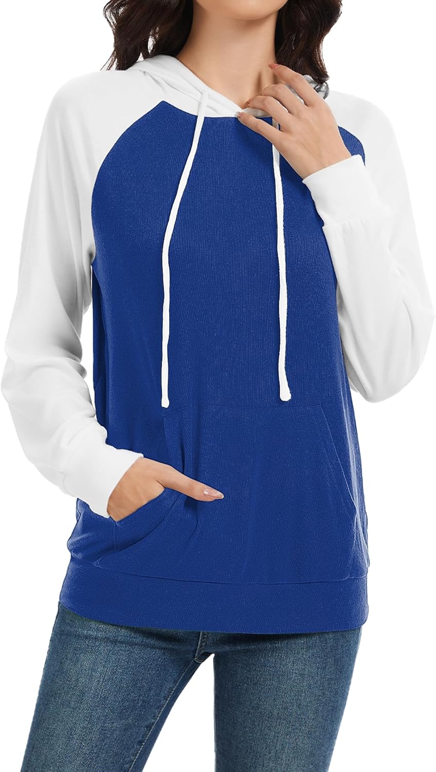 Hoodies for Women Lightweight Long Sleeve Sweatshirt Loose Fit Color Block Tunic Tops with Pockets 2025