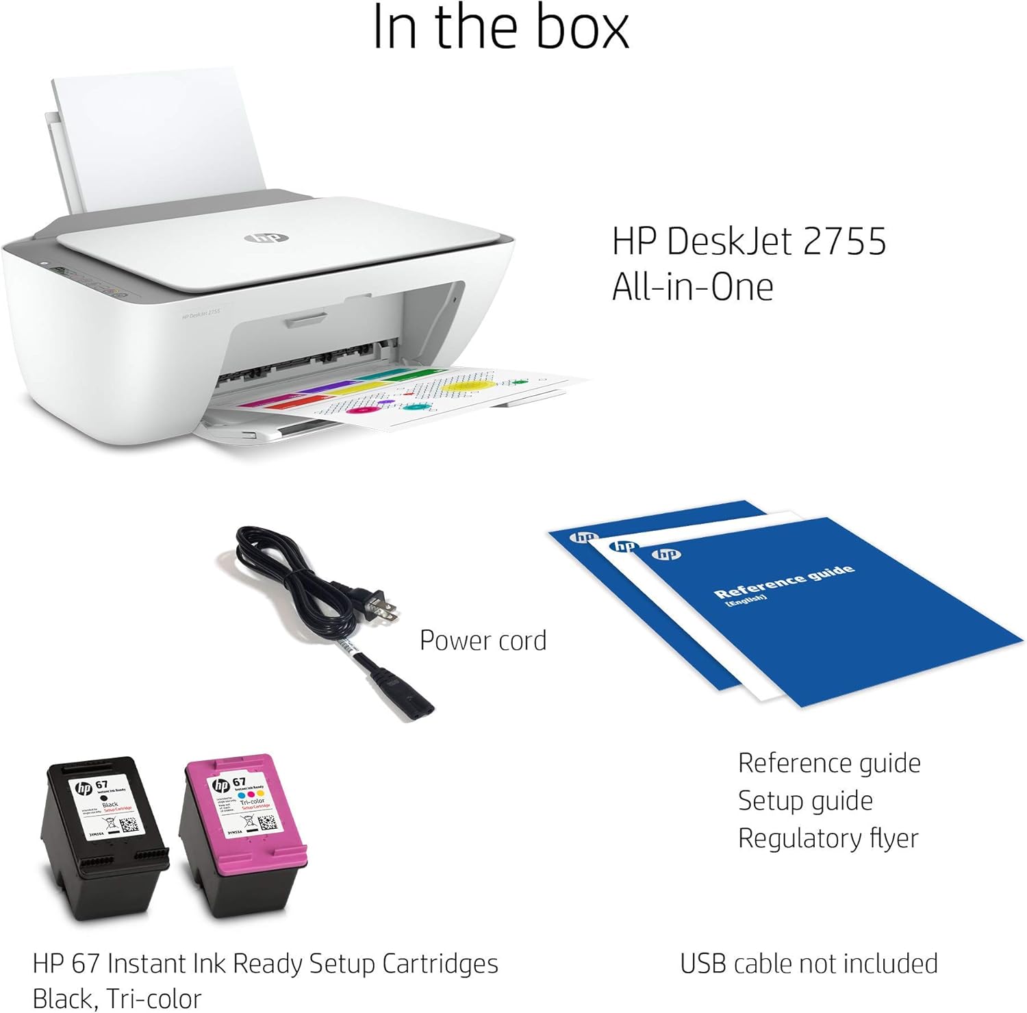 HP DeskJet 2755 All-in-One Wireless Printer Scanner Copier Instant Ink Ready Mobile Print Black 7.5ppm Color 5.5ppm Wifi Inkjet Computer Printers for Home Use and Office, Grey (Renewed)