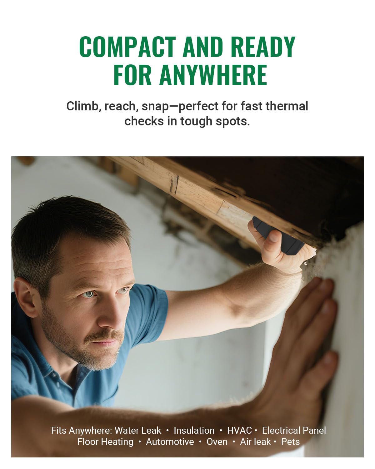 【Intelligent Scene Recognition with IntellFault】Featuring HSFTOOLS’ unique IntellFault technology for automated scene detection. Powered by deep learning, it swiftly identifies water leaks and insulation gaps, which makes thermal inspections simpler, faster and more reliable. Download latest firmware on HSFTOOLS Website to upgrade and select “Scene” in the setting to experience it. Note: No moisture readings.