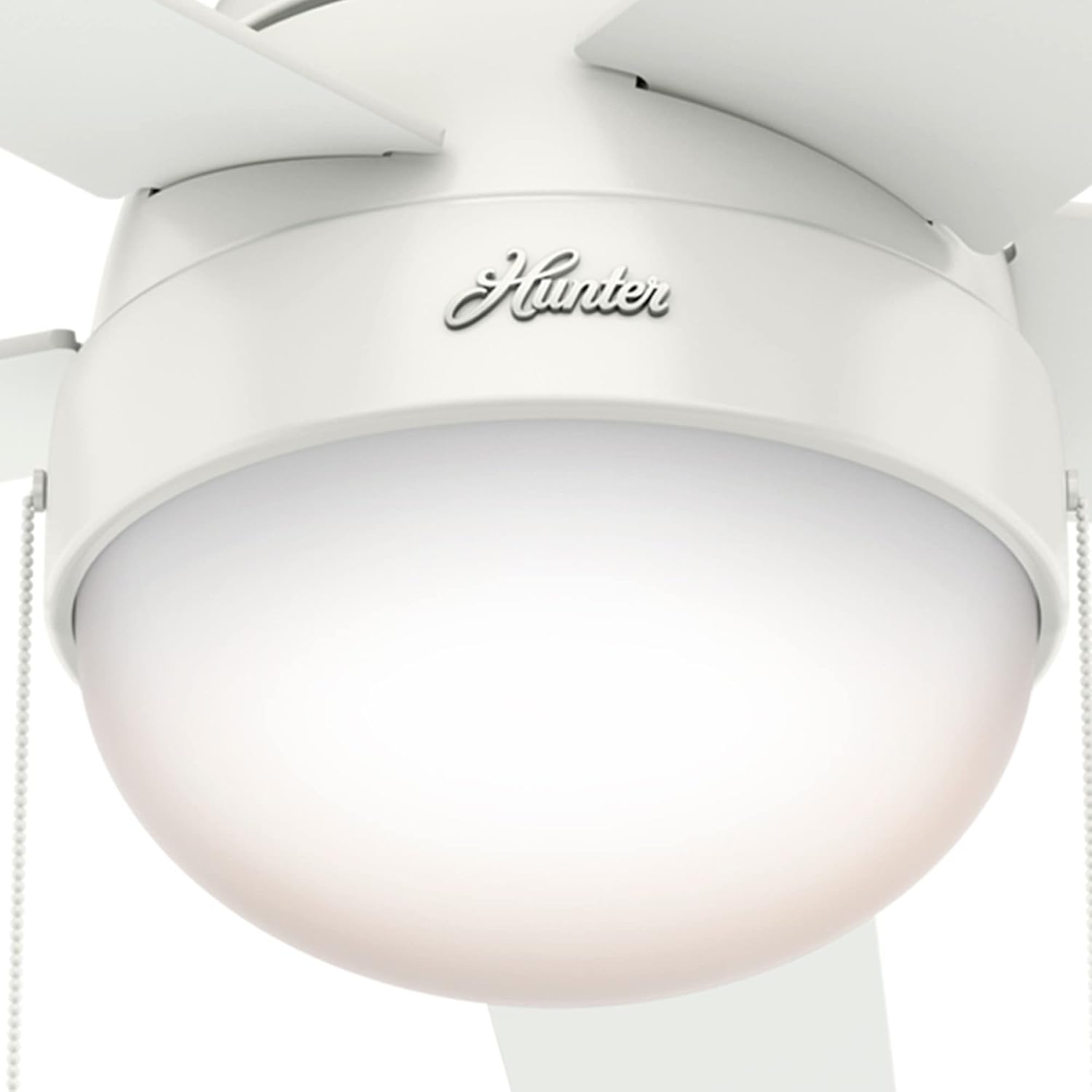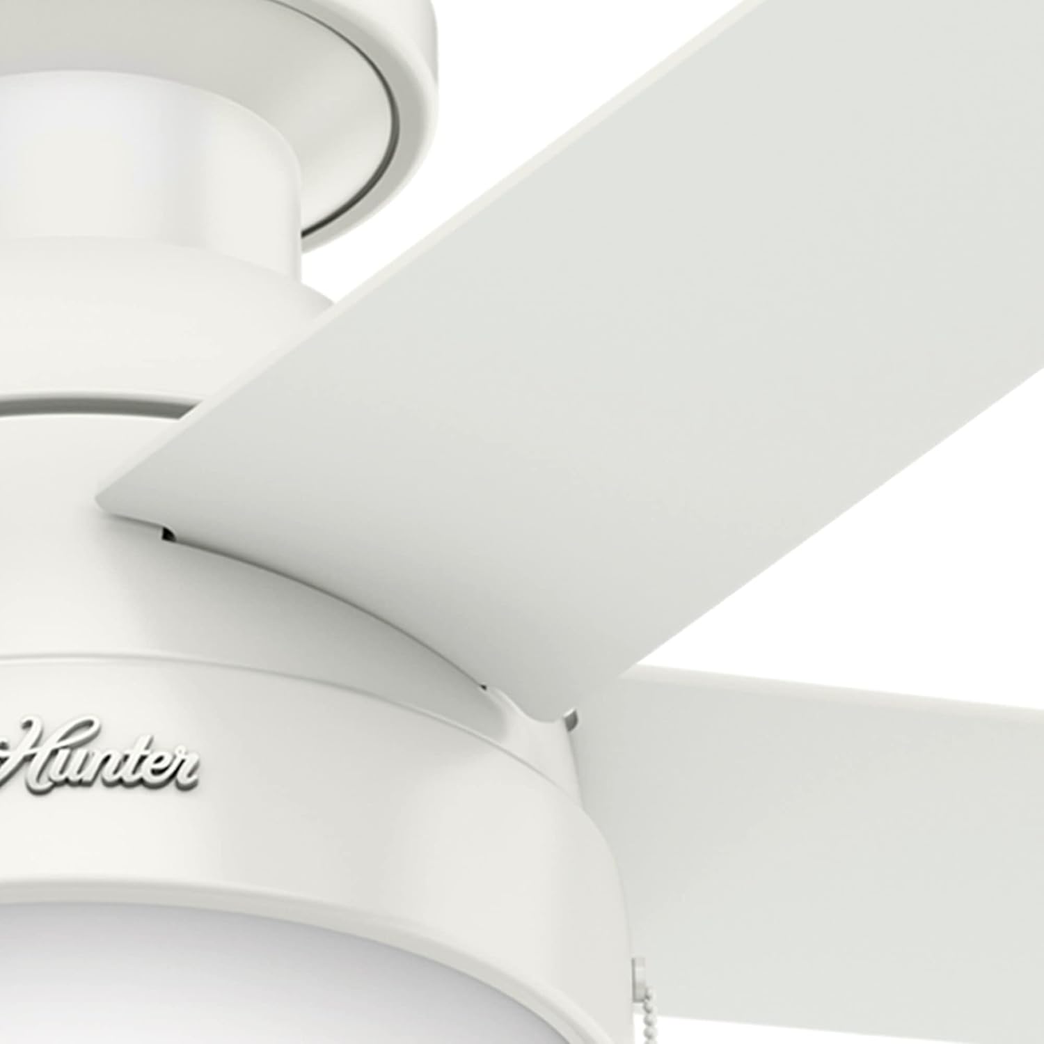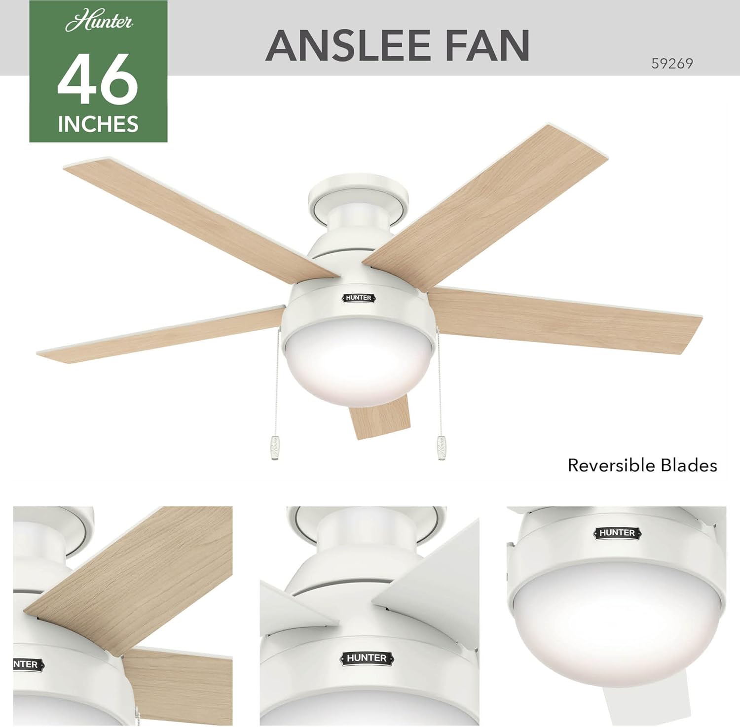 Hunter 46 inch Indoor Ceiling Fan with LED Light – White Ceiling Fan with Pull Chain, For Bedroom, Living Room, or Kitchen, Low Profile Mount, No Remote, 5 Blades – Anslee 59269, Fresh White