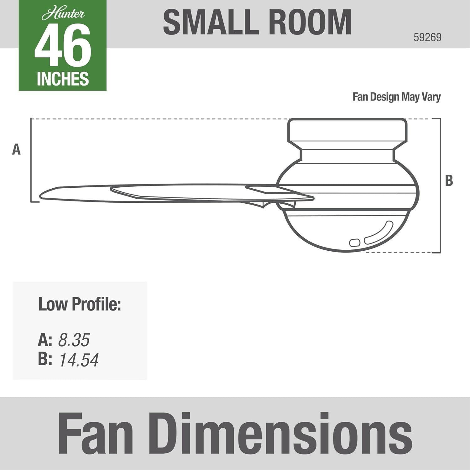 The Hunter Anslee Indoor Low Profile Ceiling Fan with LED Light and Pull Chain Control is a great addition to any room needing modern and efficient air circulation with lighting & ceiling fans. This compact ceiling fan with light measures 46 x 46 x 14.54 inches and features a contemporary design that keeps your home looking fresh and inspired. Ideal as a bedroom ceiling fan with lights, it boasts an ultra low profile ceiling fan design that fits seamlessly in rooms with low ceilings. The energy-efficient LED light allows you to control the ambiance, making it an excellent option for living rooms, lounges, and children’s rooms.